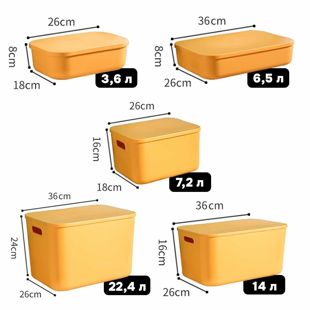 Контейнер с крышкой для хранения пластиковый цветной SH179 (желтый низкий большой)