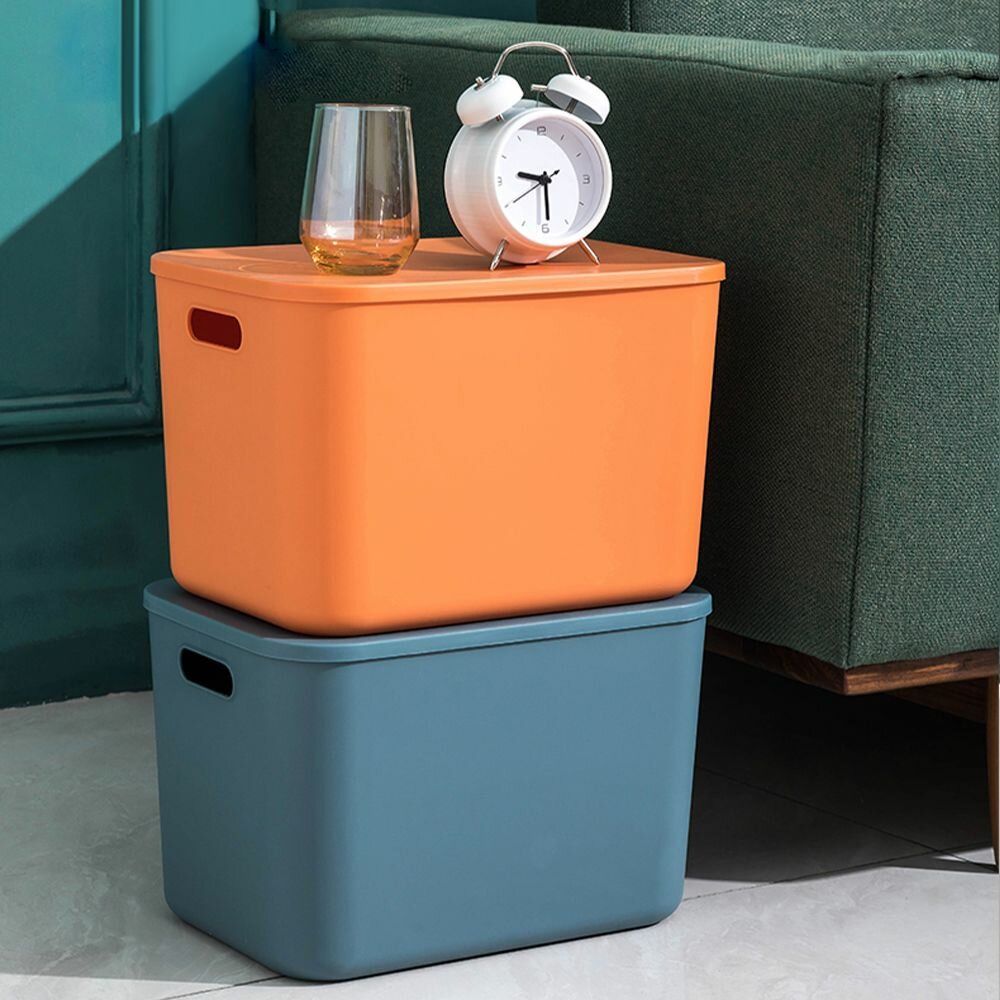 Контейнер с крышкой для хранения пластиковый цветной SH179 (оранжевый низкий большой)