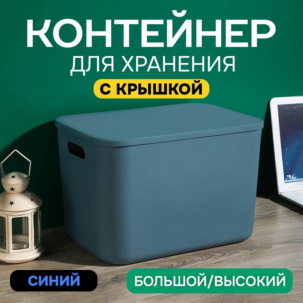 Контейнер с крышкой для хранения пластиковый цветной SH179 (синий низкий большой)