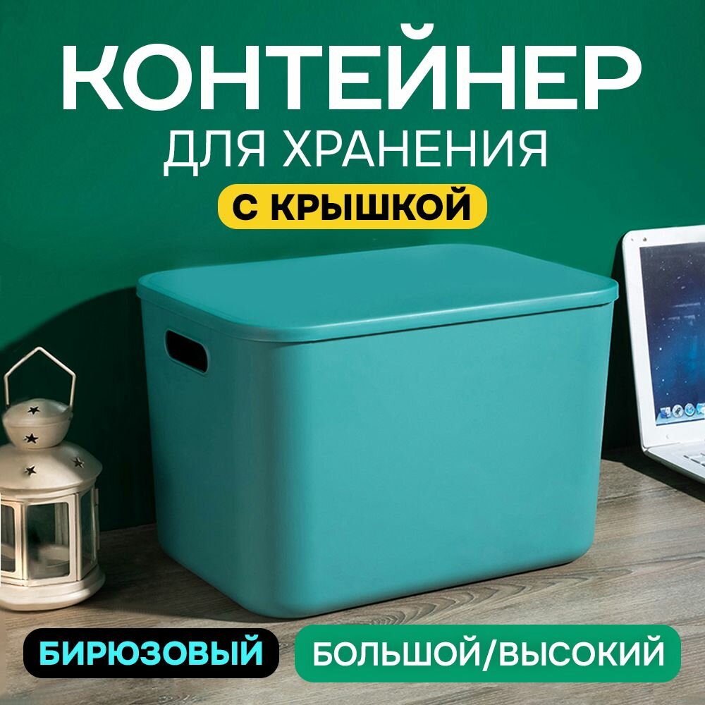 Контейнер с крышкой для хранения пластиковый цветной SH179 (бирюзовый низкий большой)