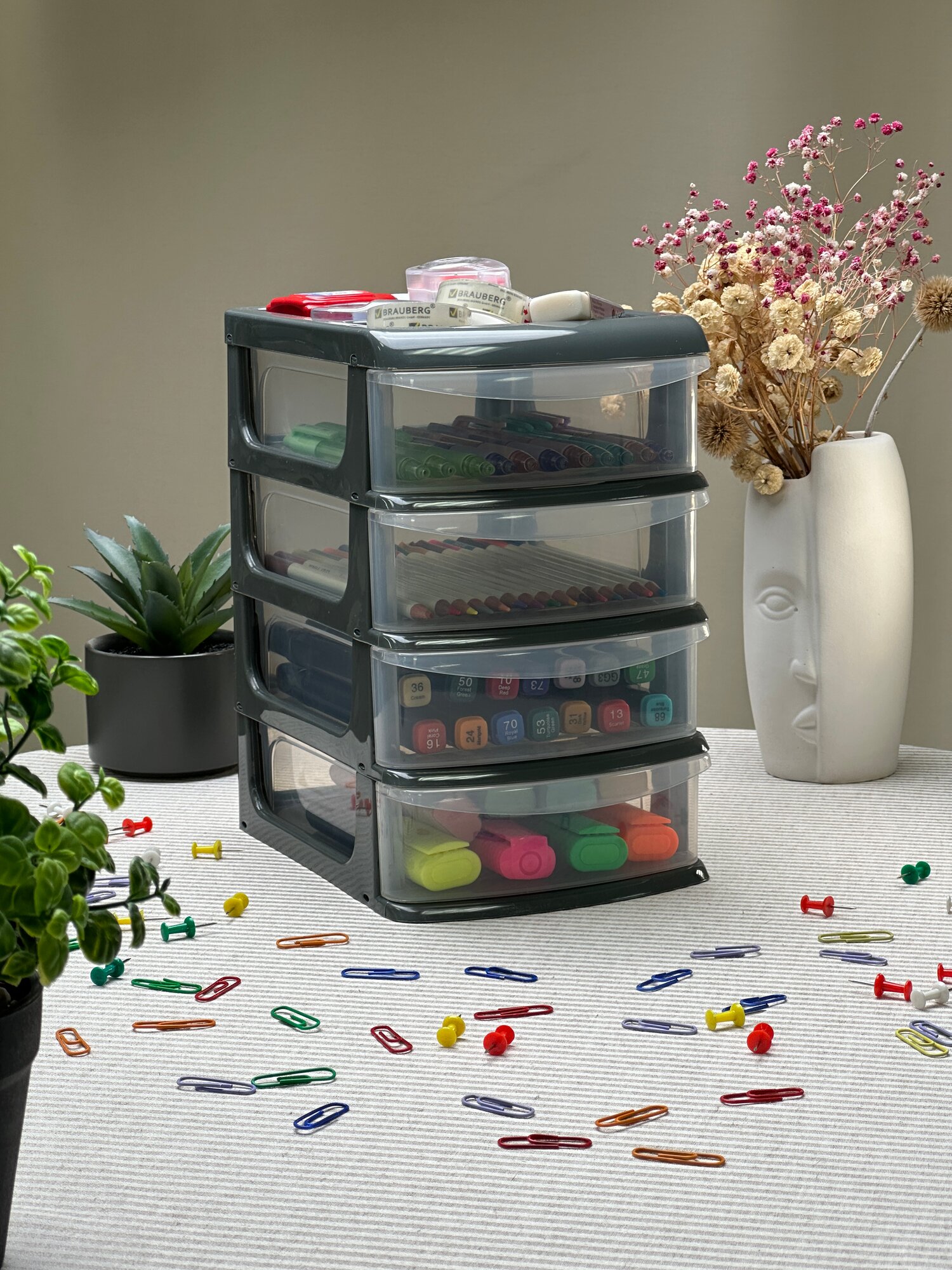 Купить Органайзер для хранения мелочи, косметики, канцелярии, лекарств, шитья, 4 прозрачных ящика, 15x20x23 см