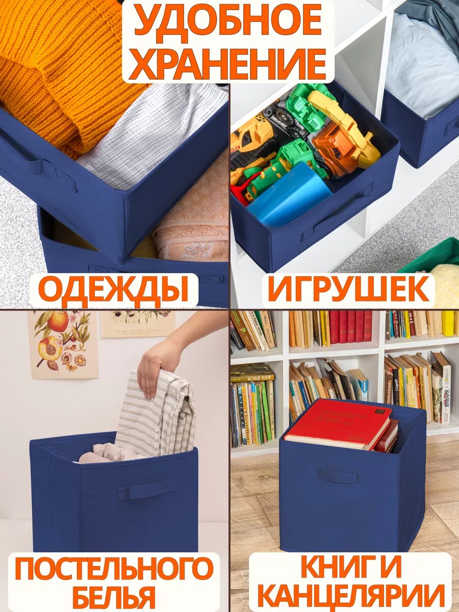 Купить Коробки для хранения вещей набор коробов для игрушек короб органайзер 31*31*31 комплект 3 шт, темно-синий