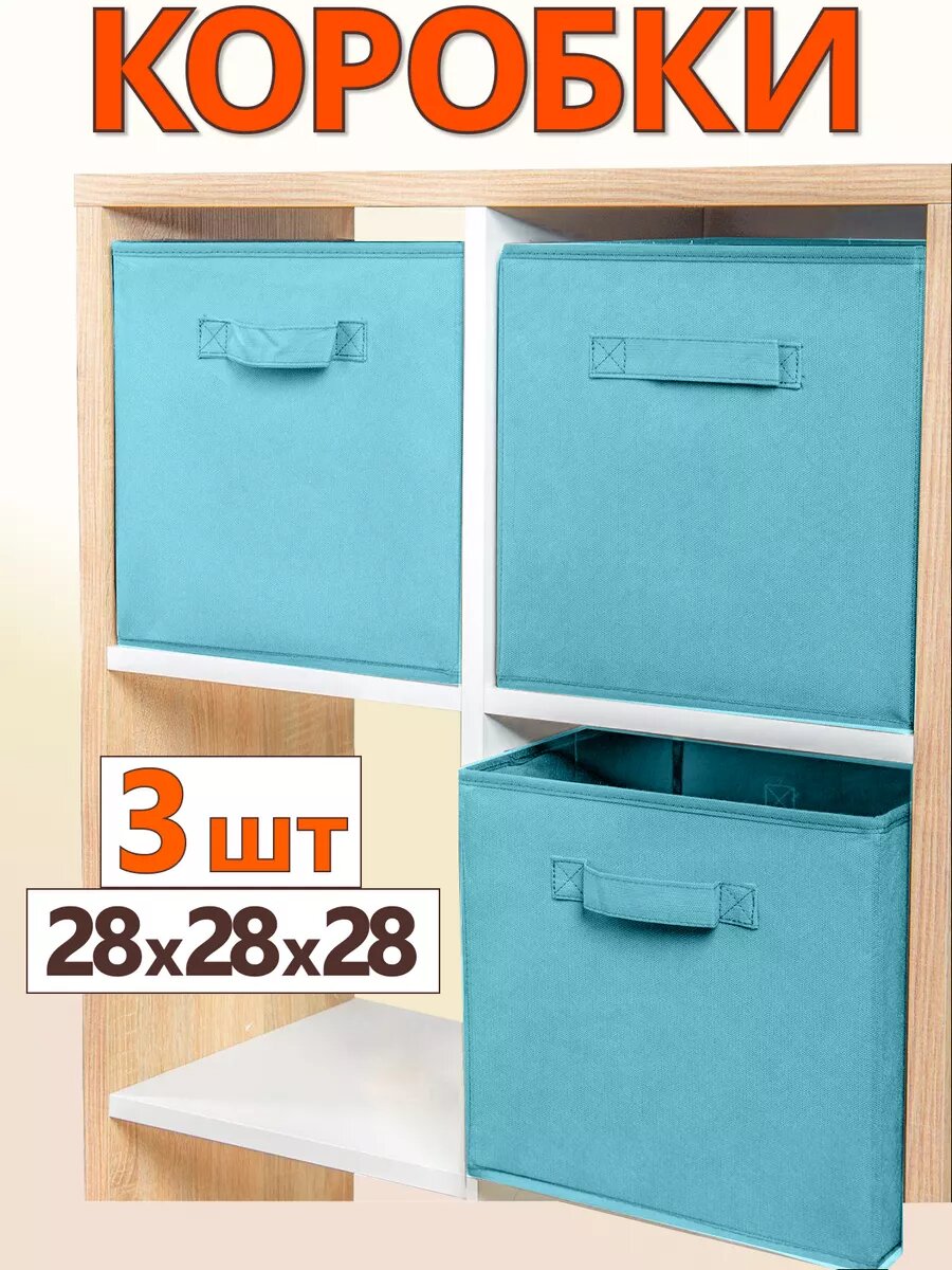 СохранитьКоробки для хранения вещей набор коробов для игрушек короб органайзер 28*28*28 комплект 3 шт, голубой интересное: