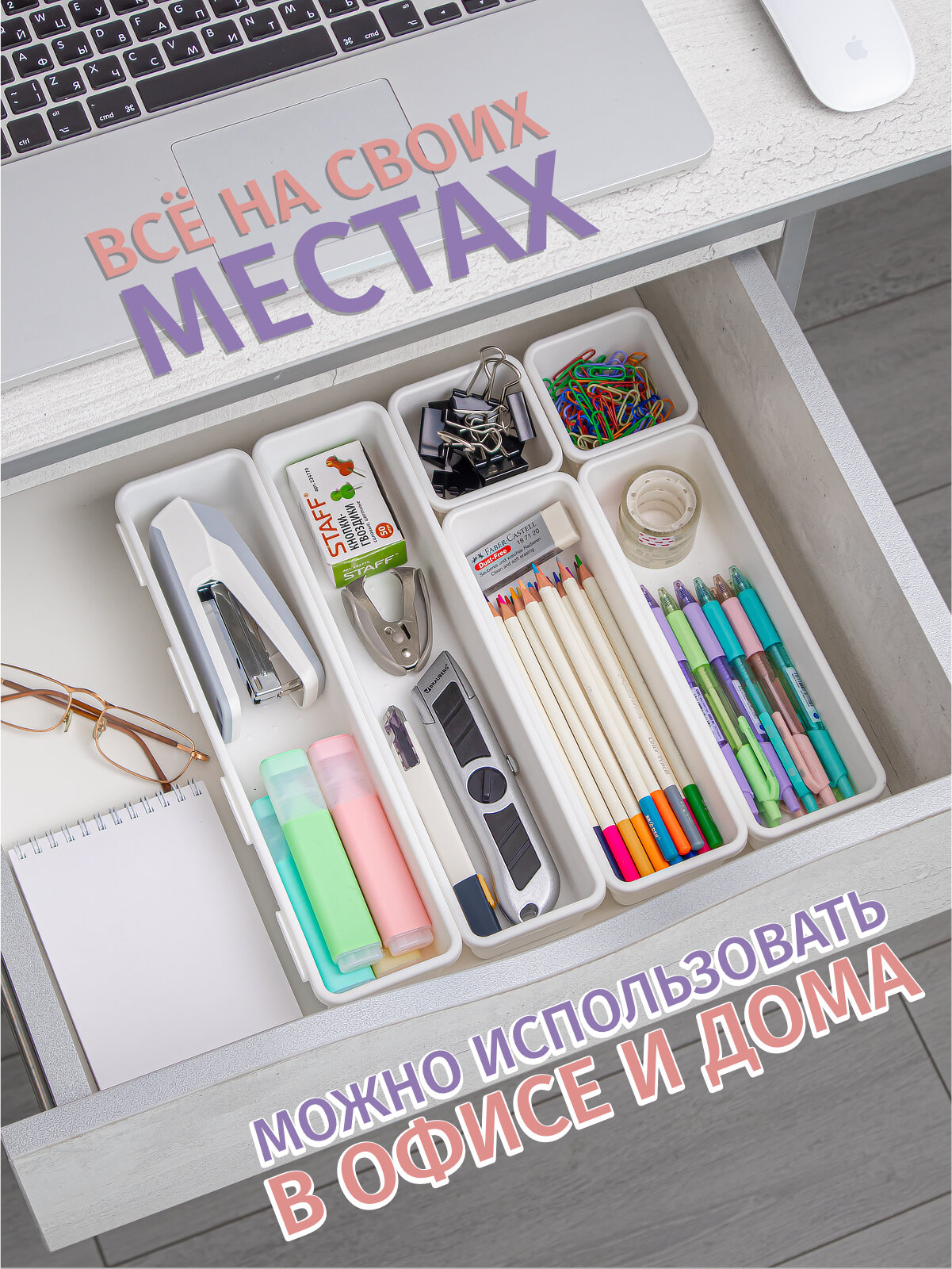 Органайзер для столовых приборов, канцелярии, косметики, мелочи, 46x31x5 см, 7 ячеек, белый