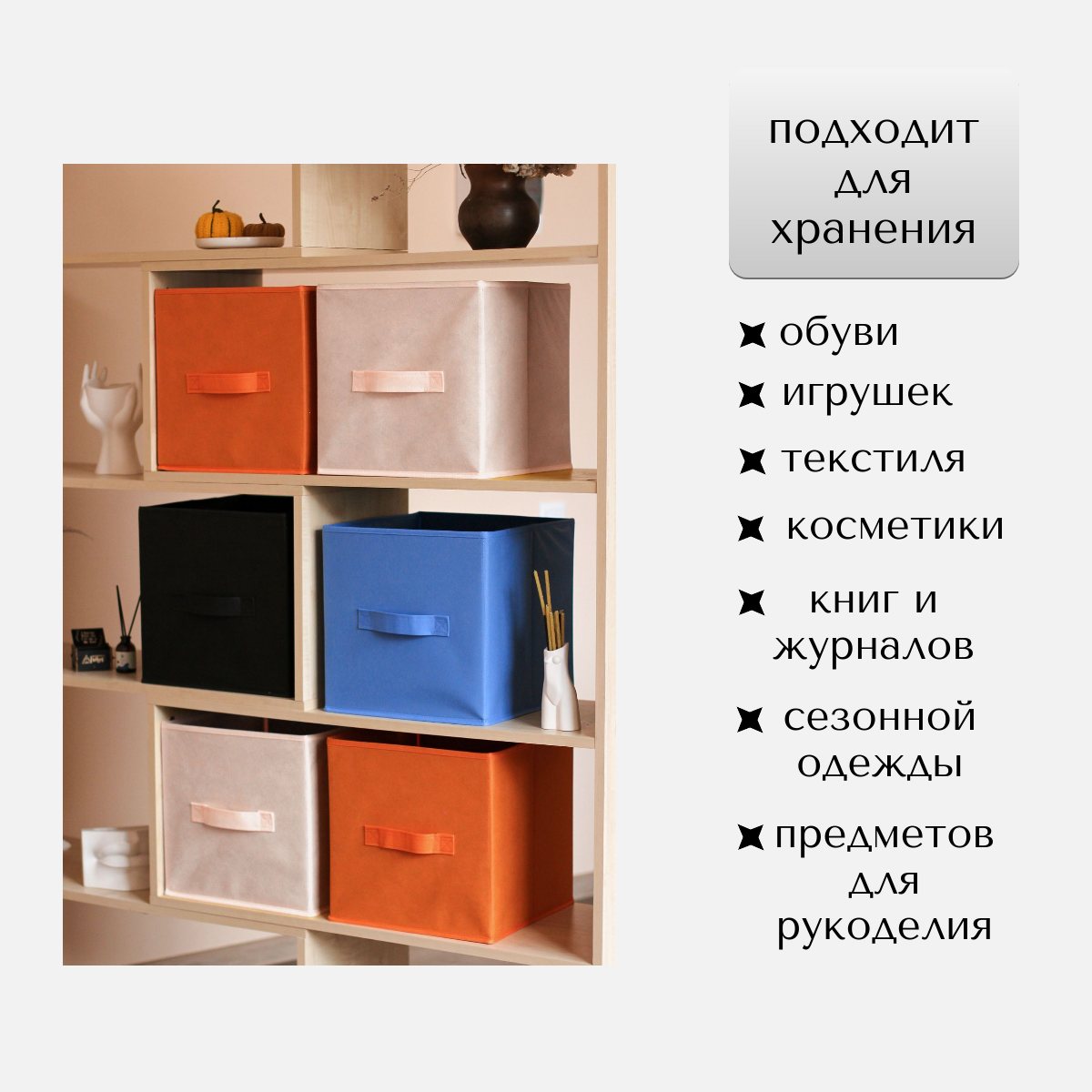 Коробка для хранения, короб для хранения стеллажный 30*30*30 см оранжевый. Набор из 2 штук