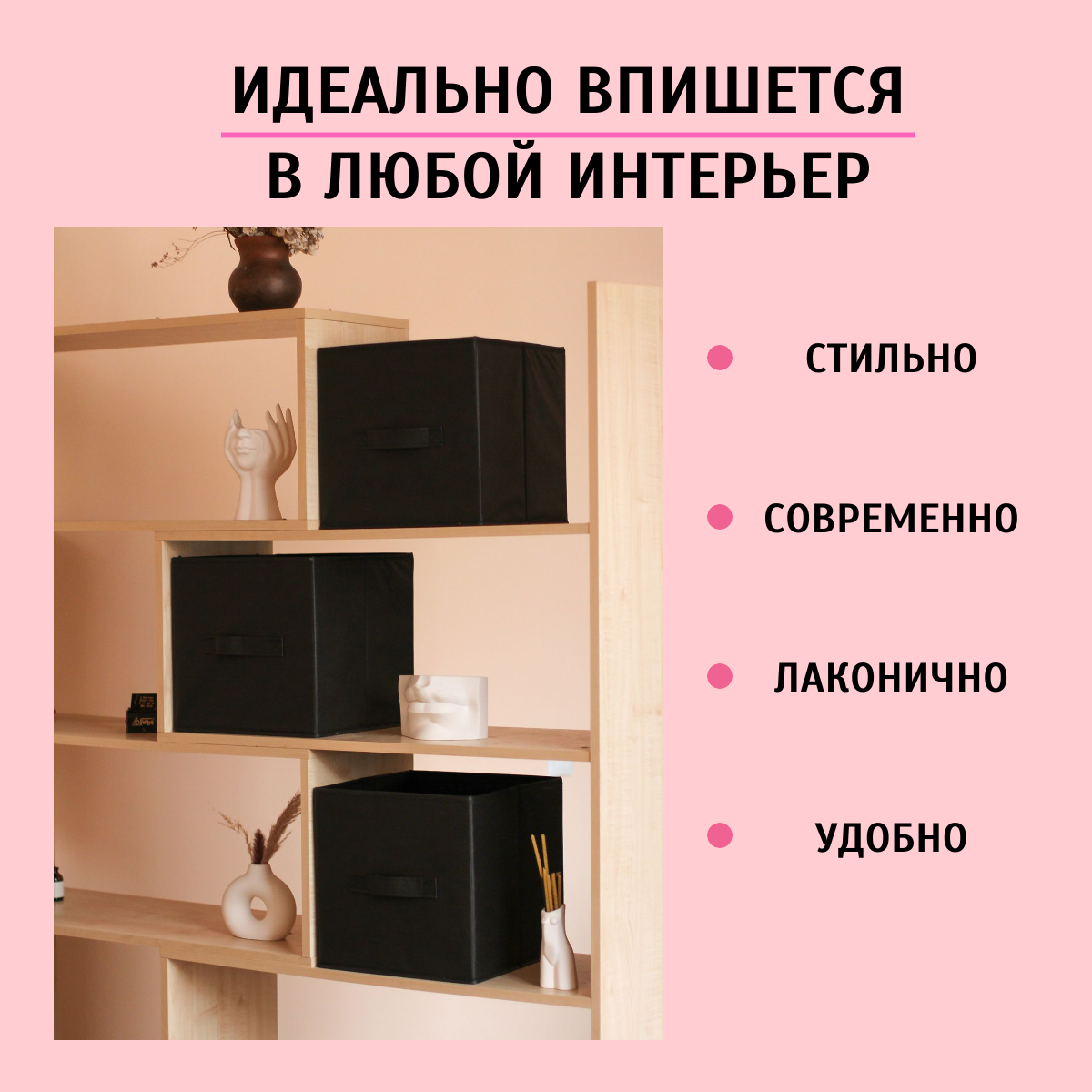 СохранитьКоробка для хранения, короб для хранения стеллажный 30*30*30 см черный. Набор из 2 штук интересное: