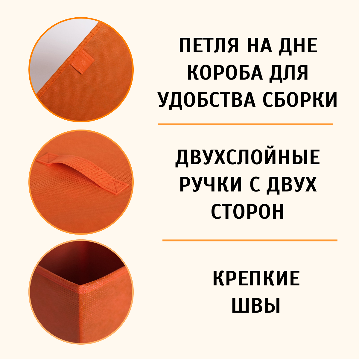 Коробка для хранения, короб для хранения стеллажный 30*30*30 см оранжевый. Набор из 3 штук