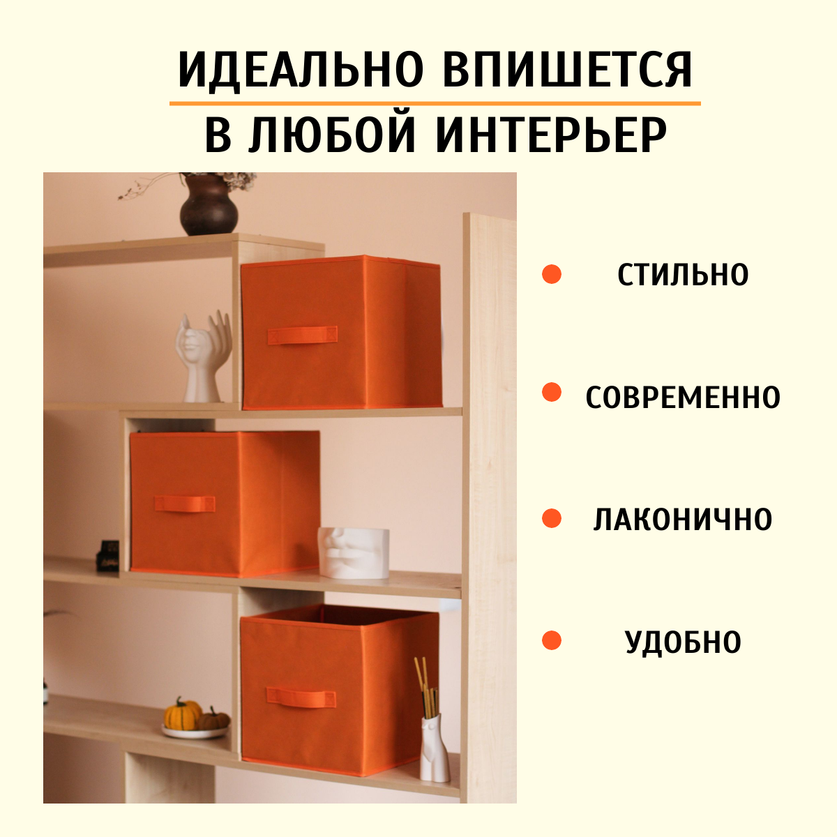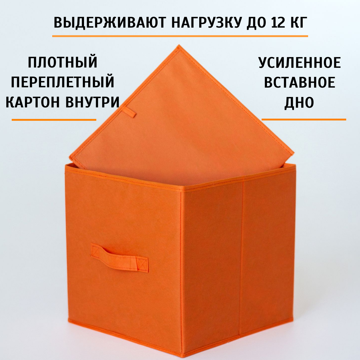 Купить Коробка для хранения, короб для хранения стеллажный 30*30*30 см оранжевый. Набор из 3 штук