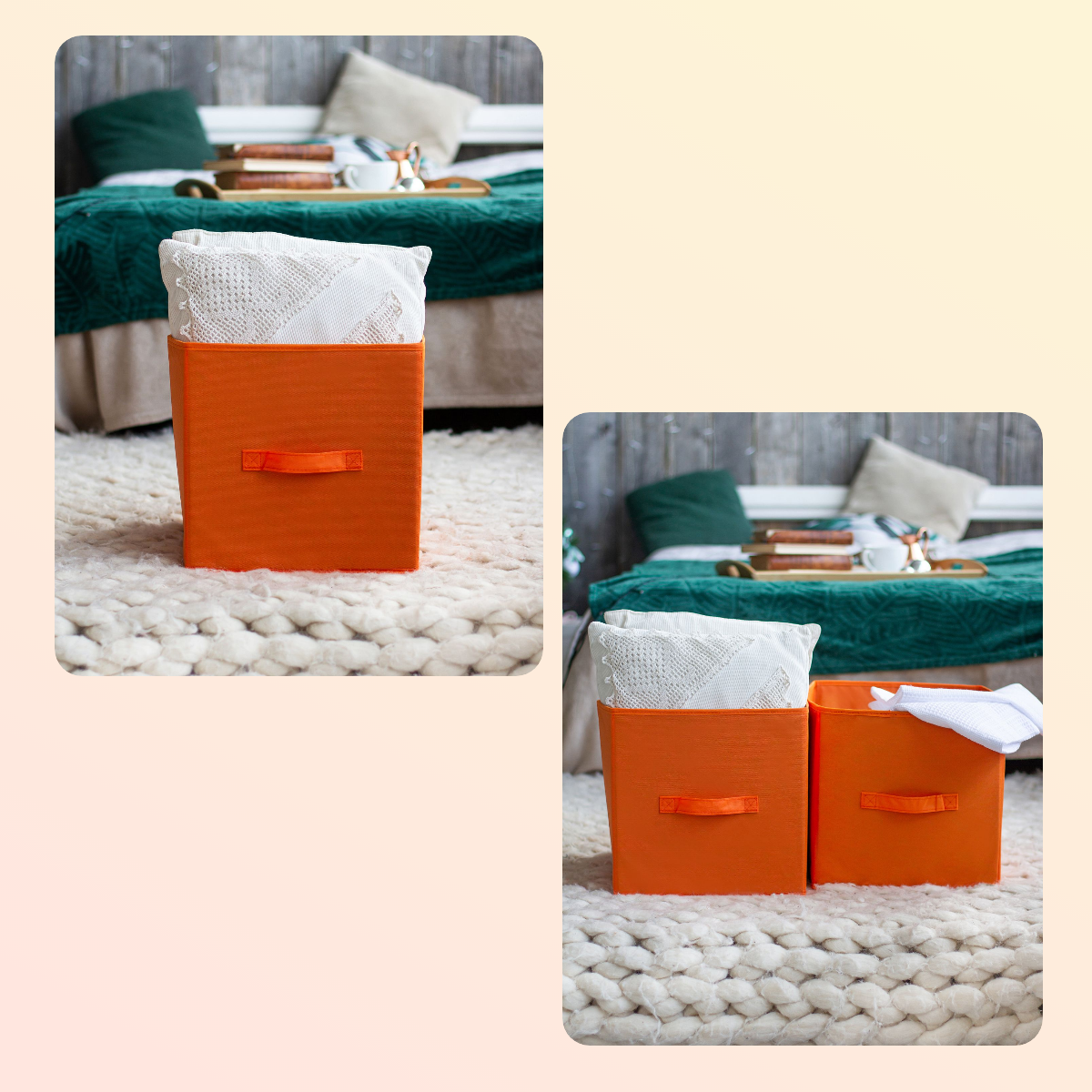 Коробка для хранения, короб для хранения стеллажный 30*30*30 см оранжевый. Набор из 2 штук