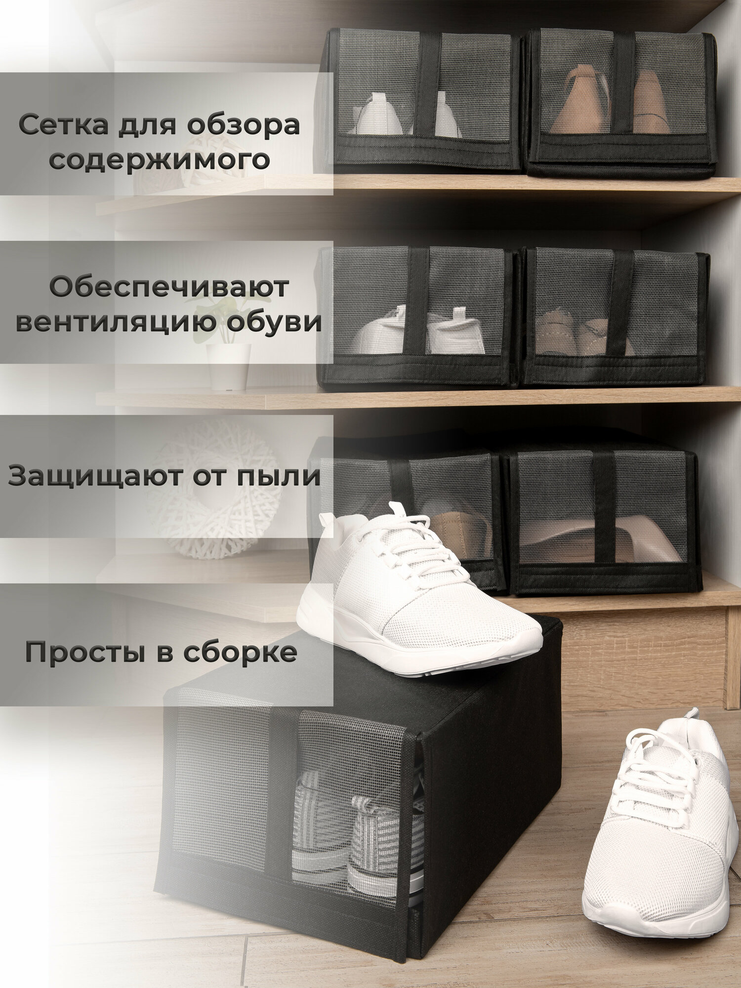 Коробка для хранения обуви Black Orange Group "СКУББ", складная, 8 шт./уп, черная интересное: