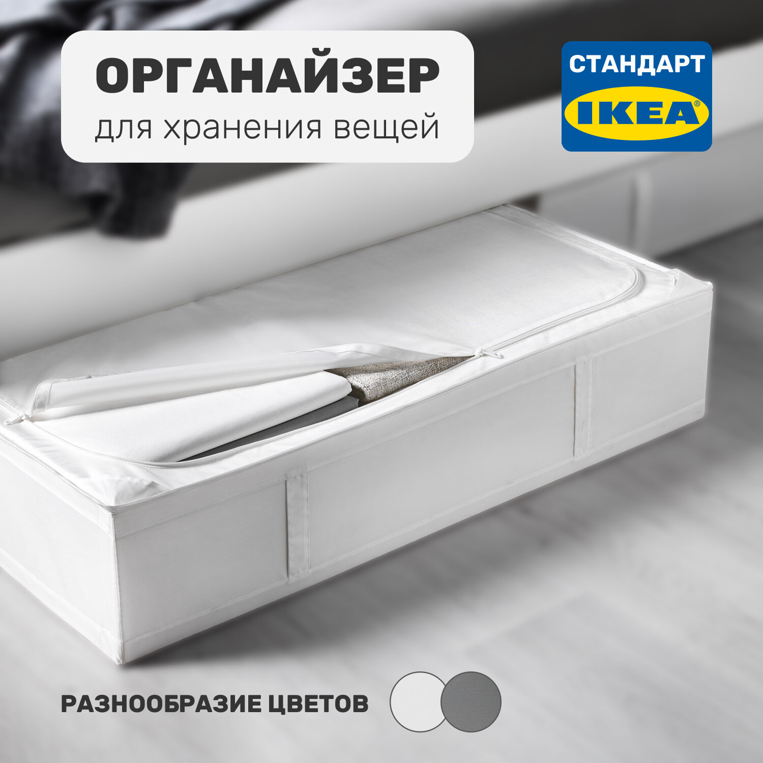 Купить Органайзер/коробка/кофр для хранения вещей, одежды, белья, тканевый, складной, 93х55х19 см, белый