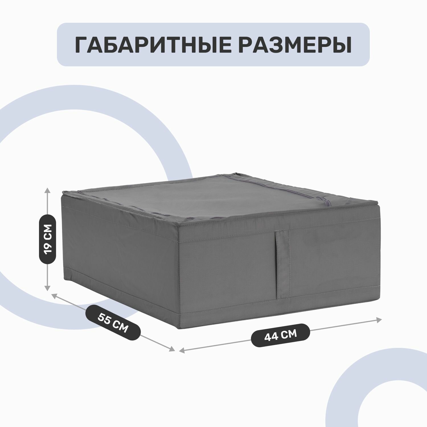 Органайзер/коробка/кофр для хранения вещей, одежды, белья, тканевый, складной, 69х55х19 см, темно-серый