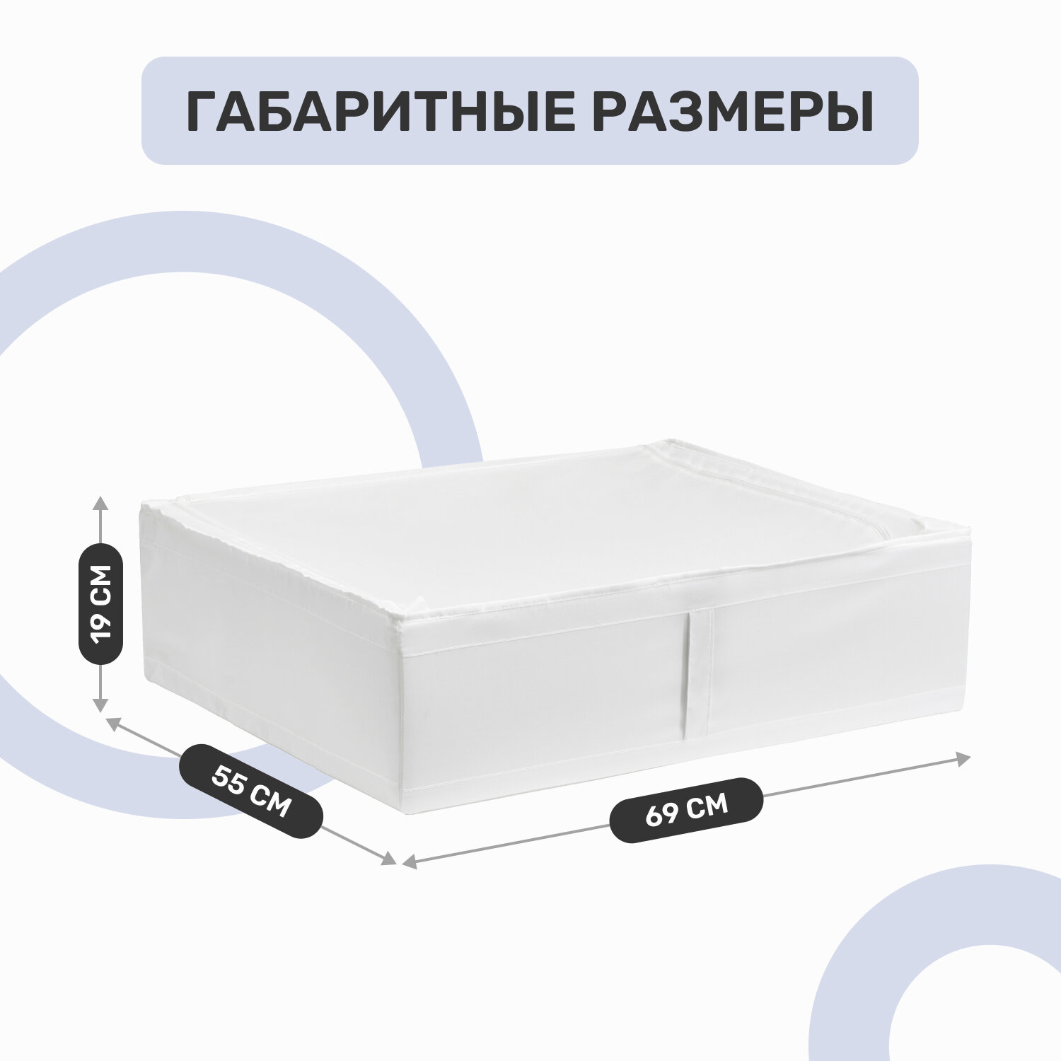 Купить Органайзер/коробка/кофр для хранения вещей, одежды, белья, тканевый, складной, 69х55х19 см, белый