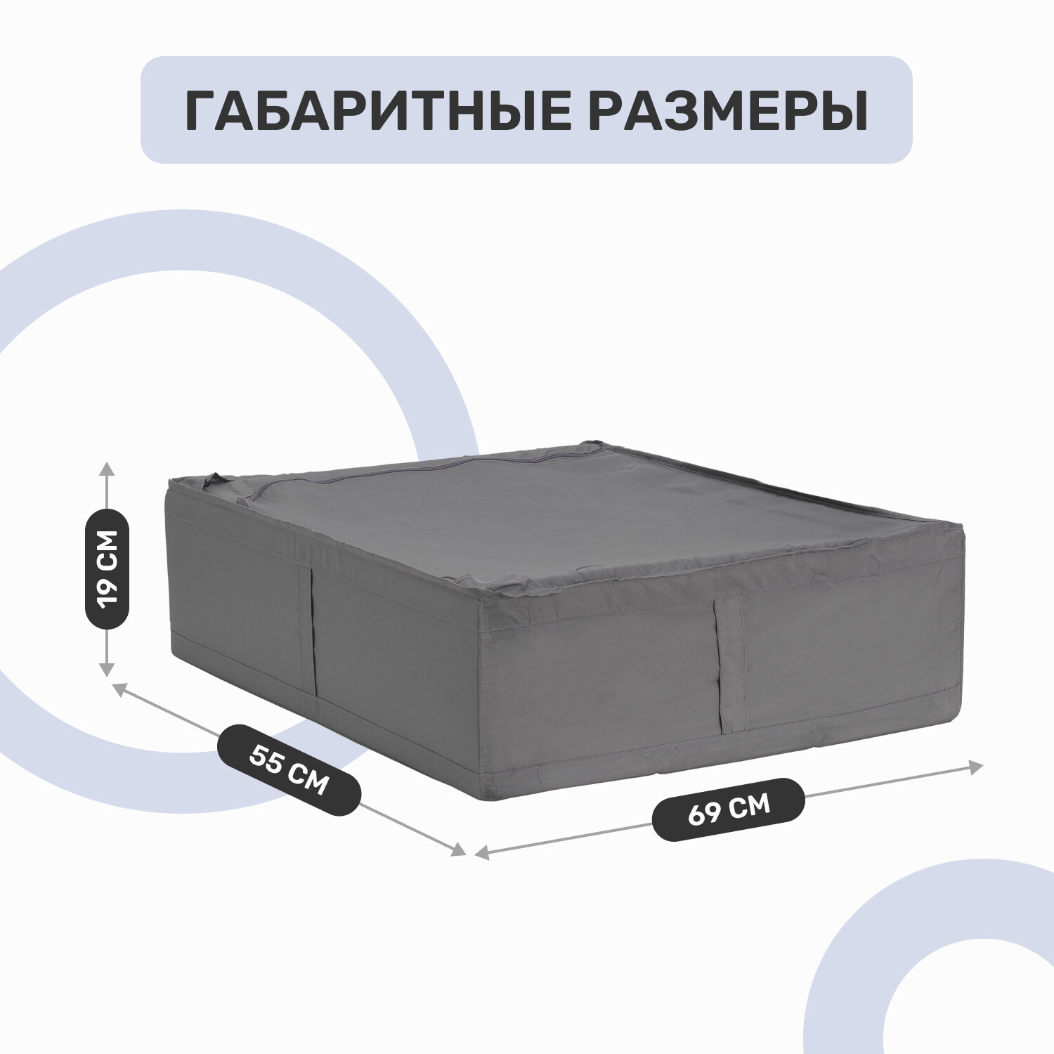Органайзер/коробка/кофр для хранения вещей, одежды, белья, тканевый, складной, 93х55х19 см, темно-серый