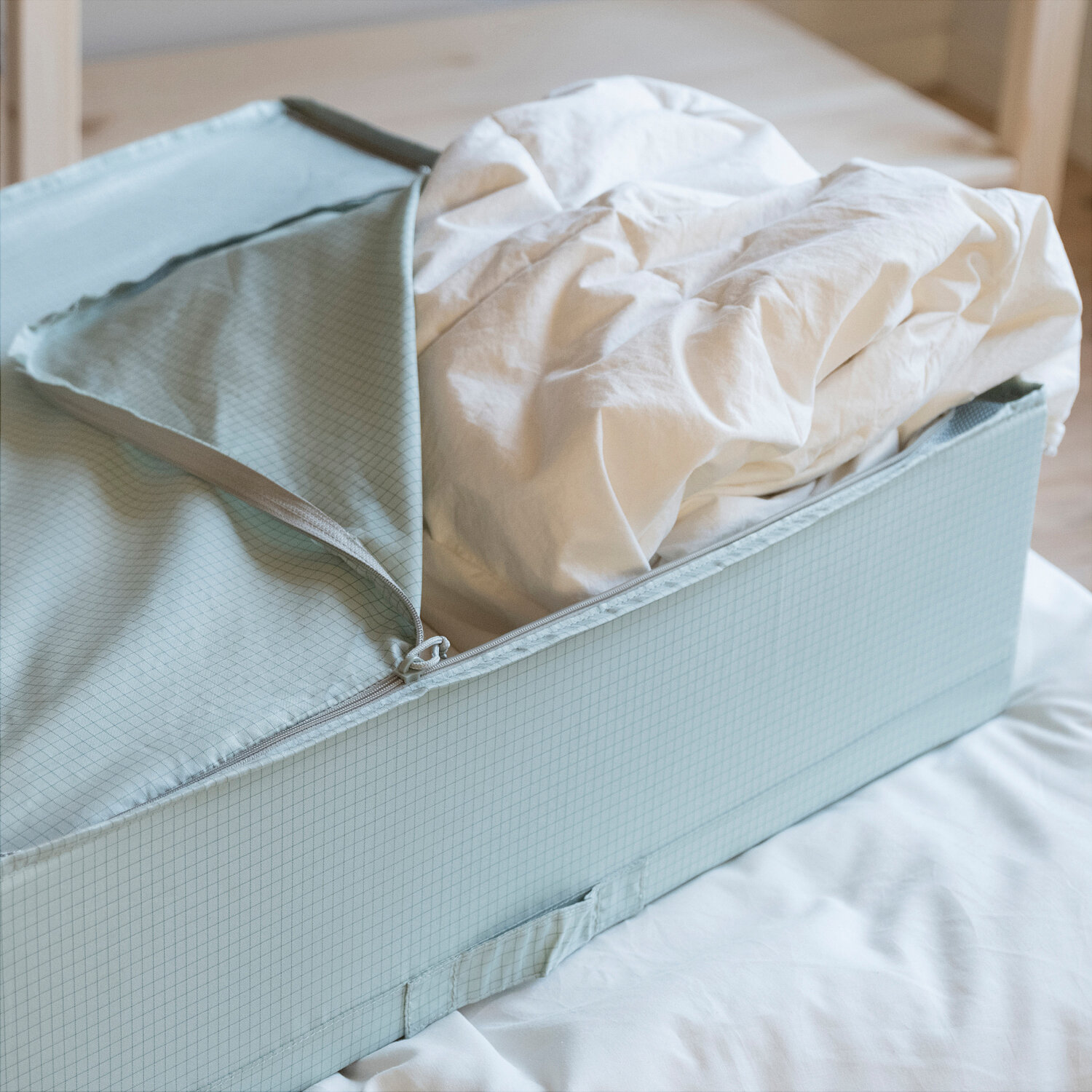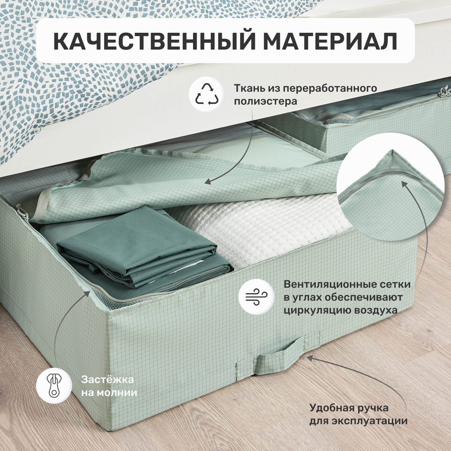 Органайзер/коробка/кофр для хранения вещей, одежды, белья, тканевый, складной, 71х51х18 см, светлый серо-зеленый