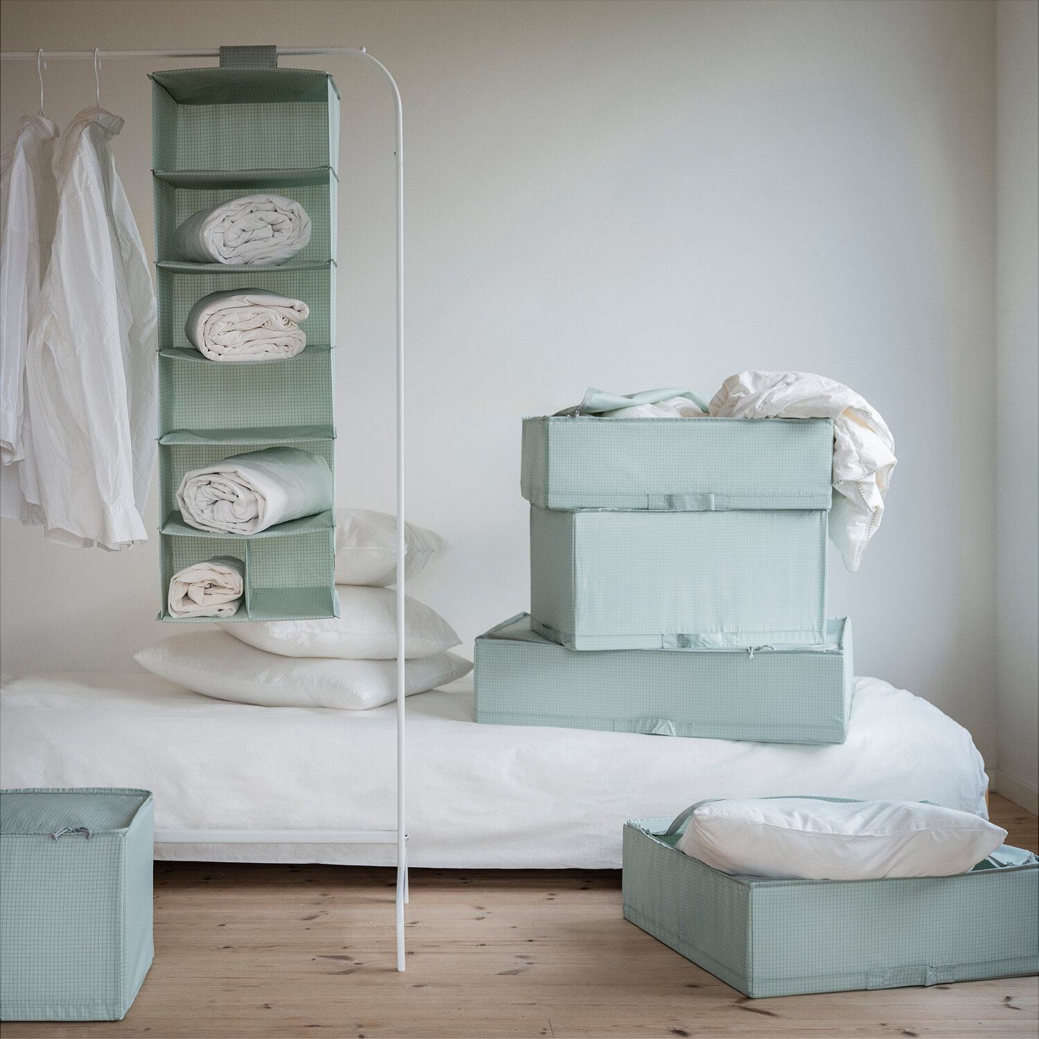 Органайзер/коробка/кофр для хранения вещей, одежды, белья, тканевый, складной, 34х51х28 см, светло серо-зеленый