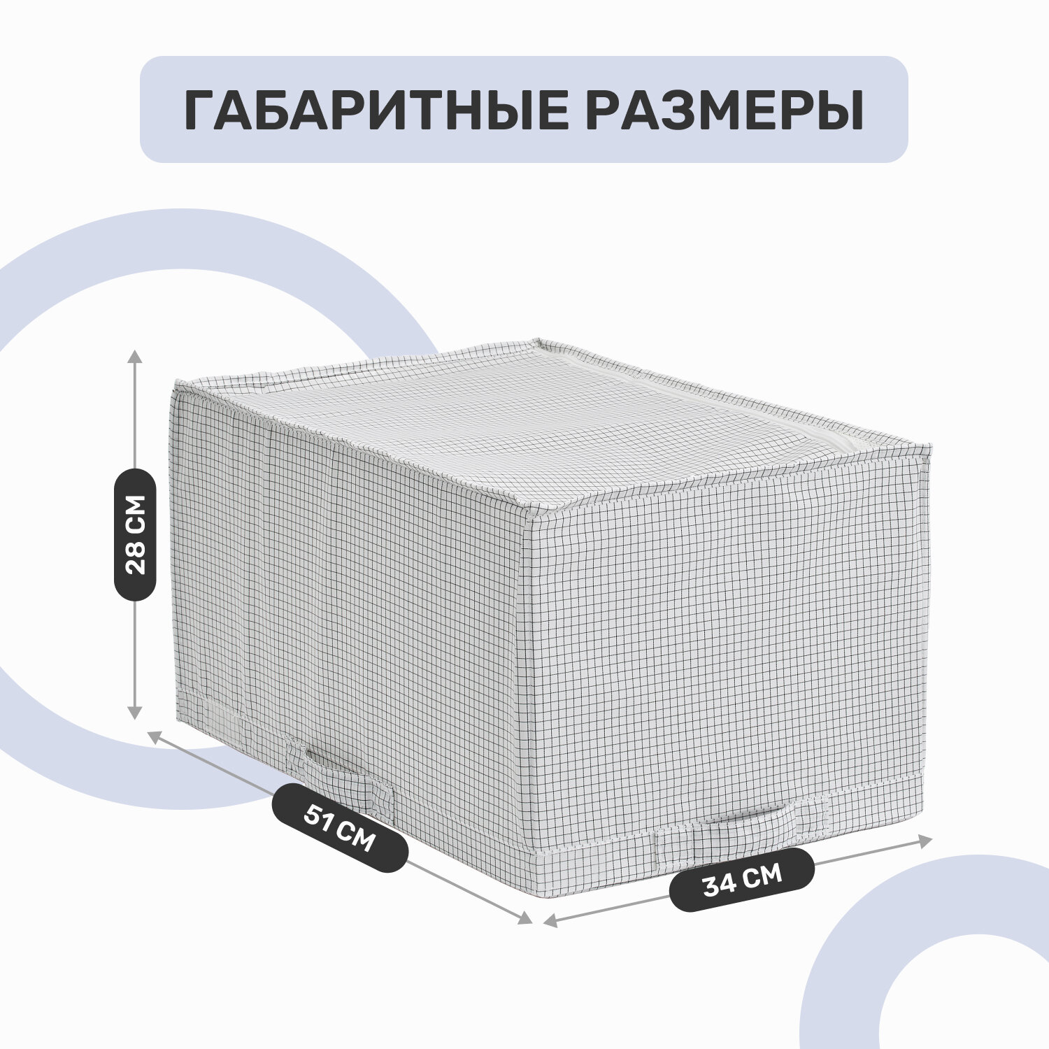 Купить Органайзер/коробка/кофр для хранения вещей, одежды, белья, тканевый, складной, 34х51х28 см, белый/серый