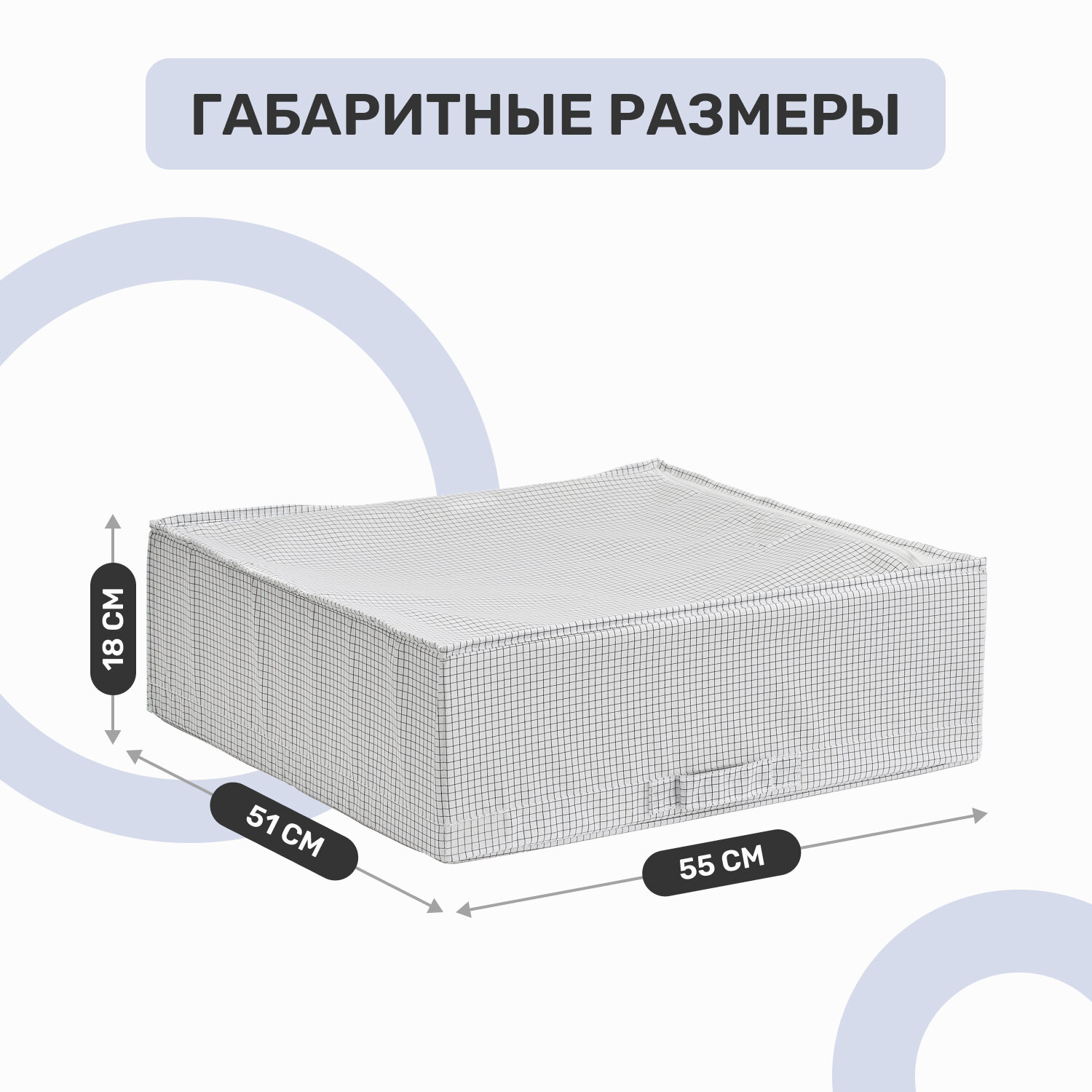 Купить Органайзер/коробка/кофр для хранения вещей, одежды, белья тканевый, складной, 55х51х18 см, белый/серый