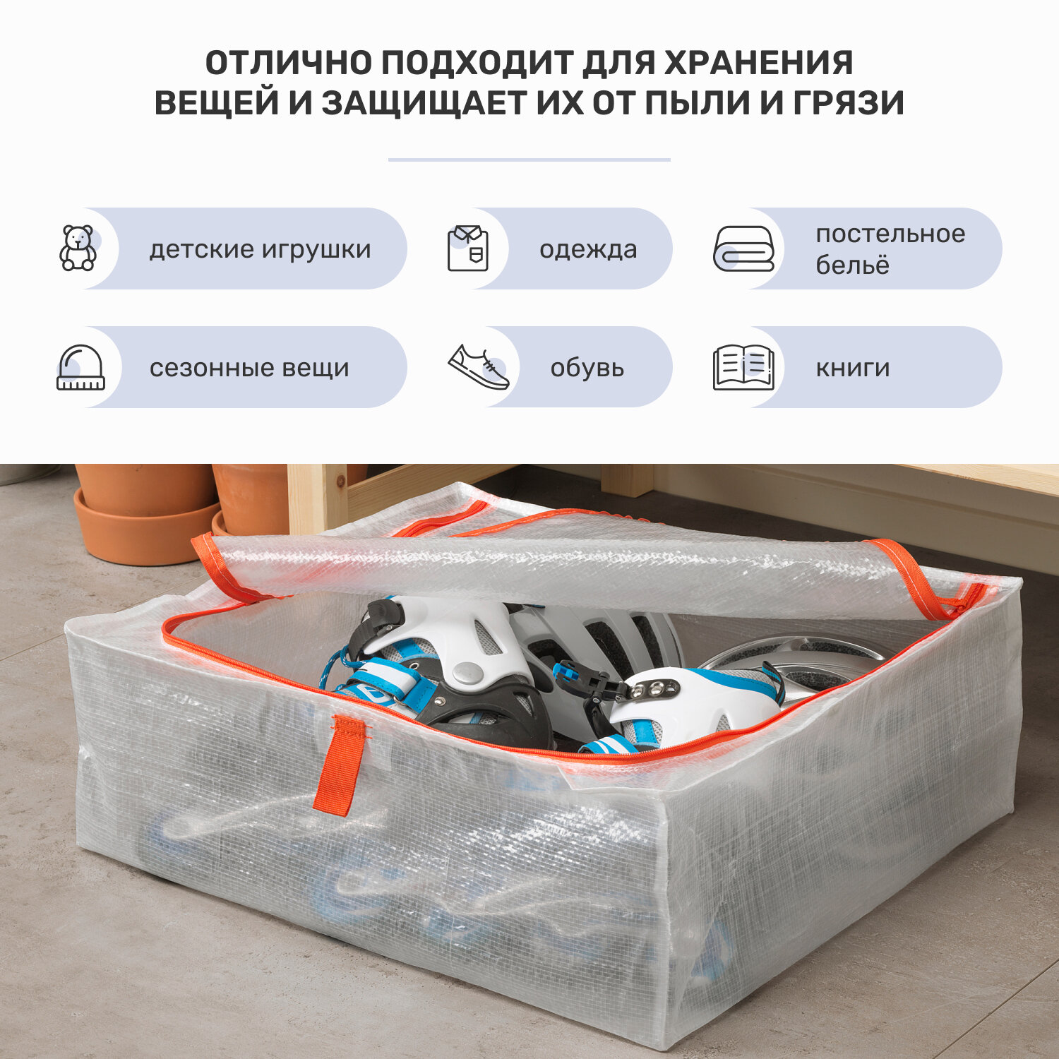 Органайзер/коробка/кофр для хранения вещей, одежды, белья, тканевый, складной, 69х55х19 см, белый