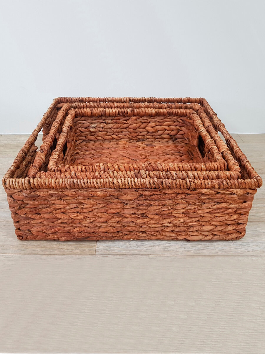 Корзина-лоток плетеная с ручками (камыш, металл каркас), 48*44*15 см, ручная работа