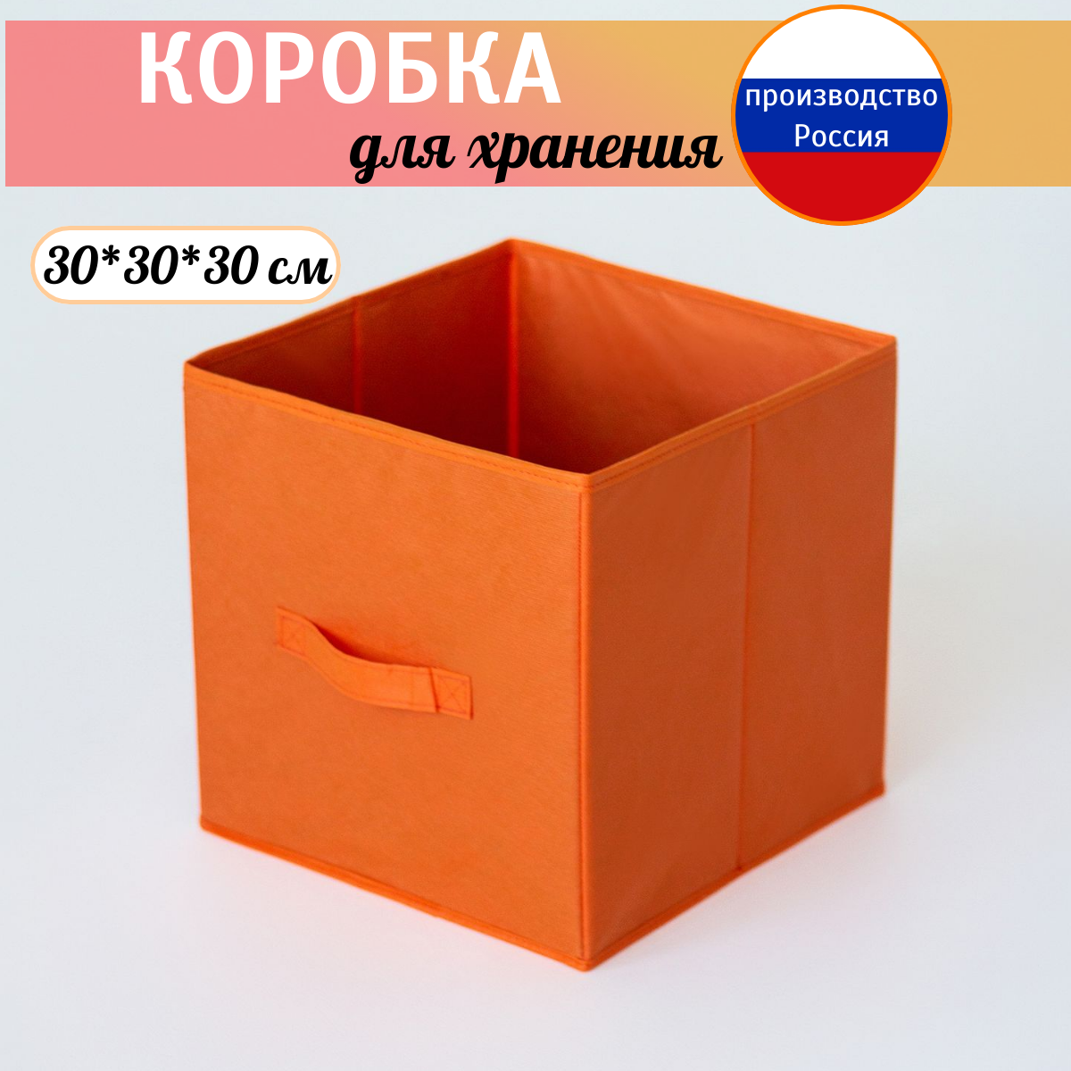Коробка для хранения, короб стеллажный 30*30*30 см оранжевый интересное: