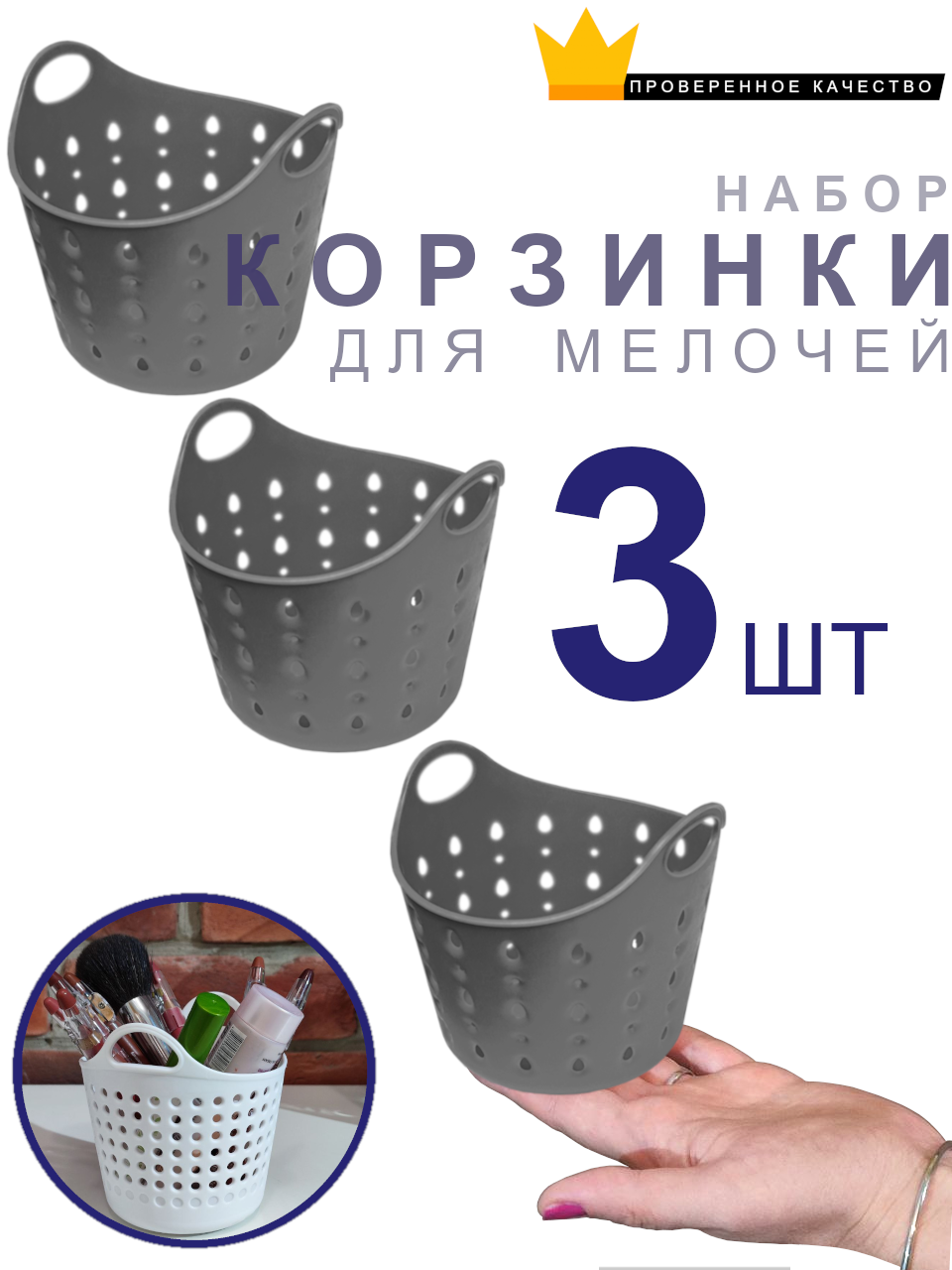 Набор корзин для хранения мелочей с ручками пластиковых 11*11см цвет серый интересное: