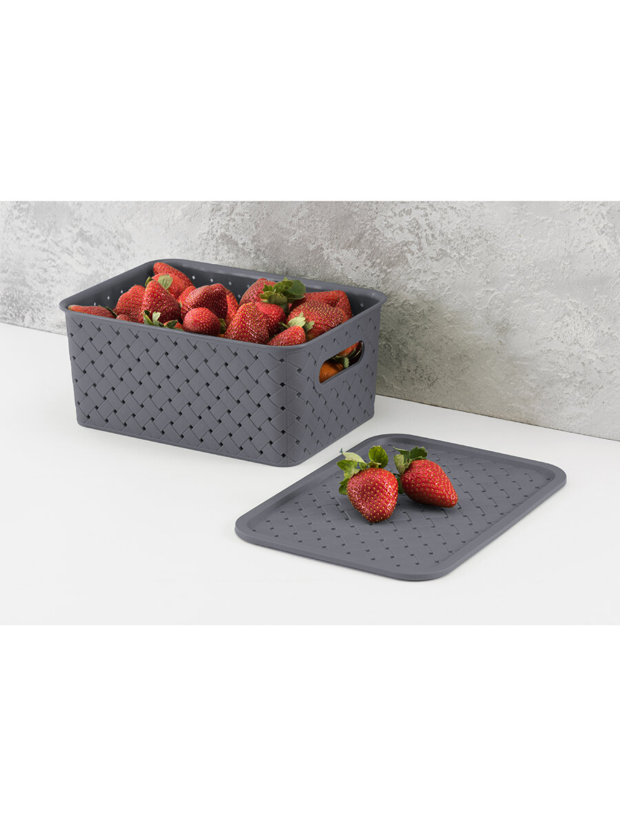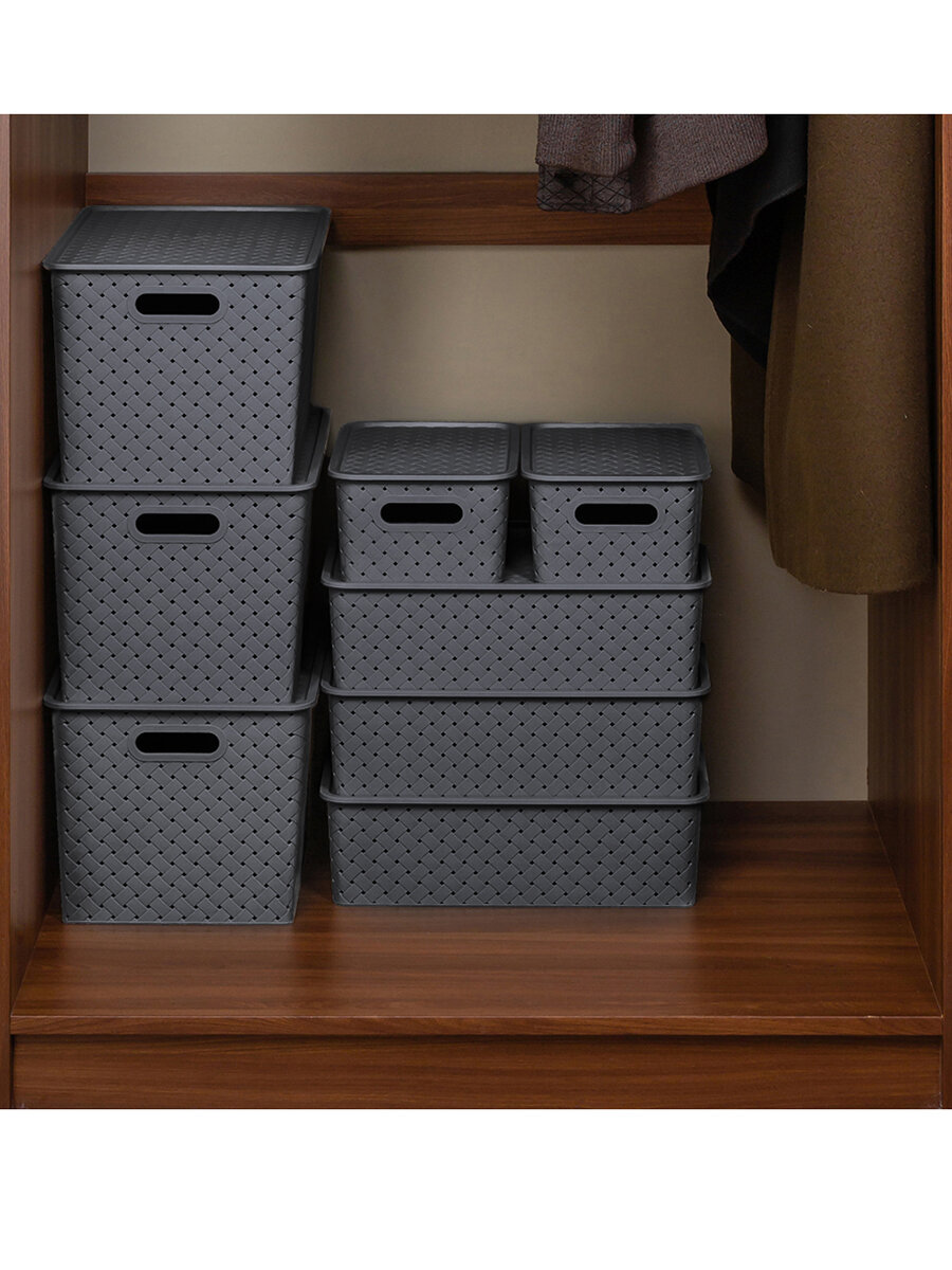 Купить Корзинка, коробка для хранения с крышкой 5 шт Береста 3 л (2шт), 7,5 л (2шт), 14 л EL Casa, светло-серый, серый, набор
