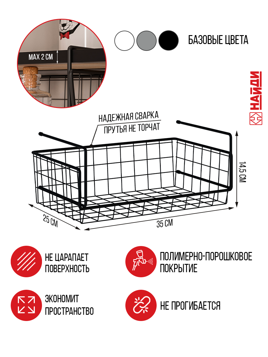 Купить Подвесная корзина, полка сетчатая, кухонный органайзер 35*25*12 см. Черный муар