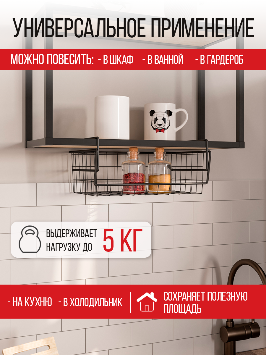Подвесная корзина, полка сетчатая, кухонный органайзер 35*25*12 см. Черный муар интересное: