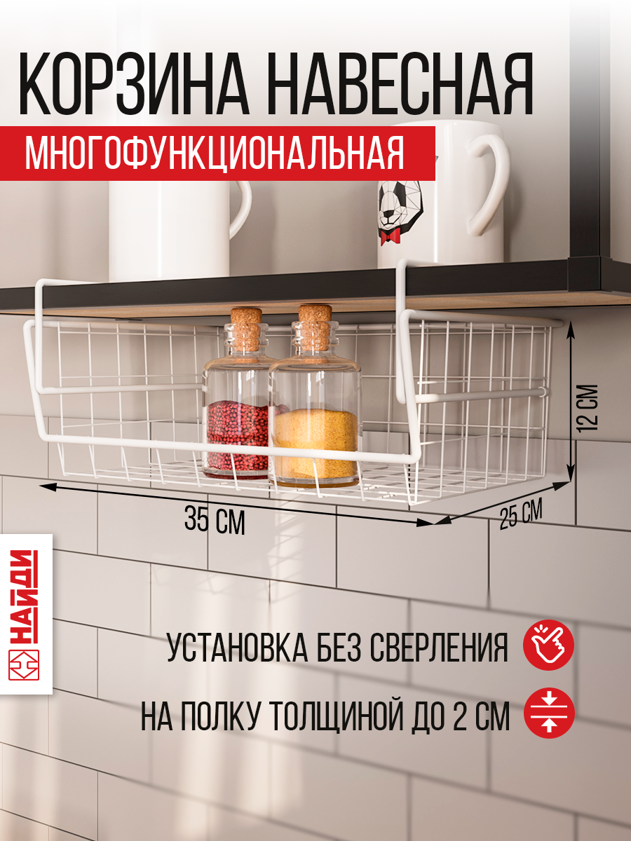 Подвесная корзина найди полка сетчатая на дверцу, кухонный органайзер, в холодильник, 35*25*12 см. Белый муар интересное: