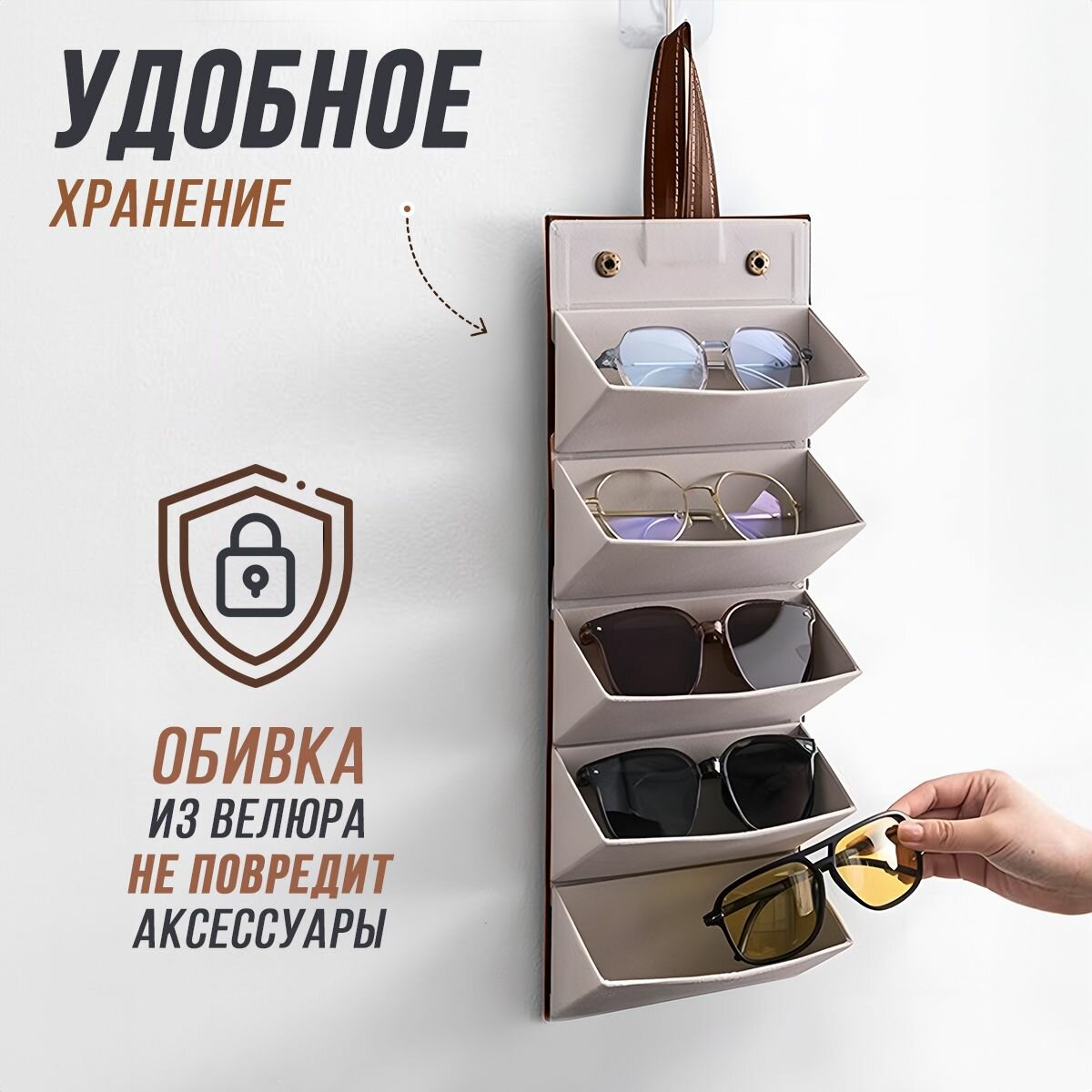 Органайзер для хранения очков из экокожи / 5 отделений / коричневый интересное: