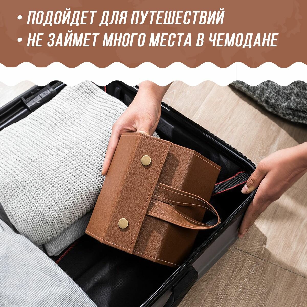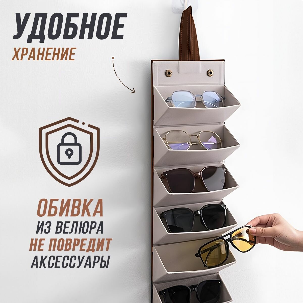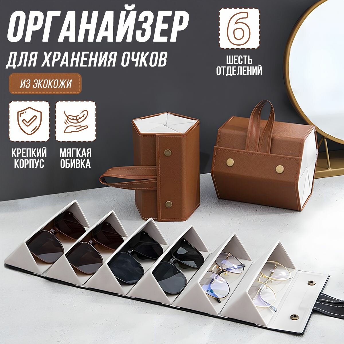 Органайзер для хранения очков из экокожи / 6 отделений / коричневый интересное: