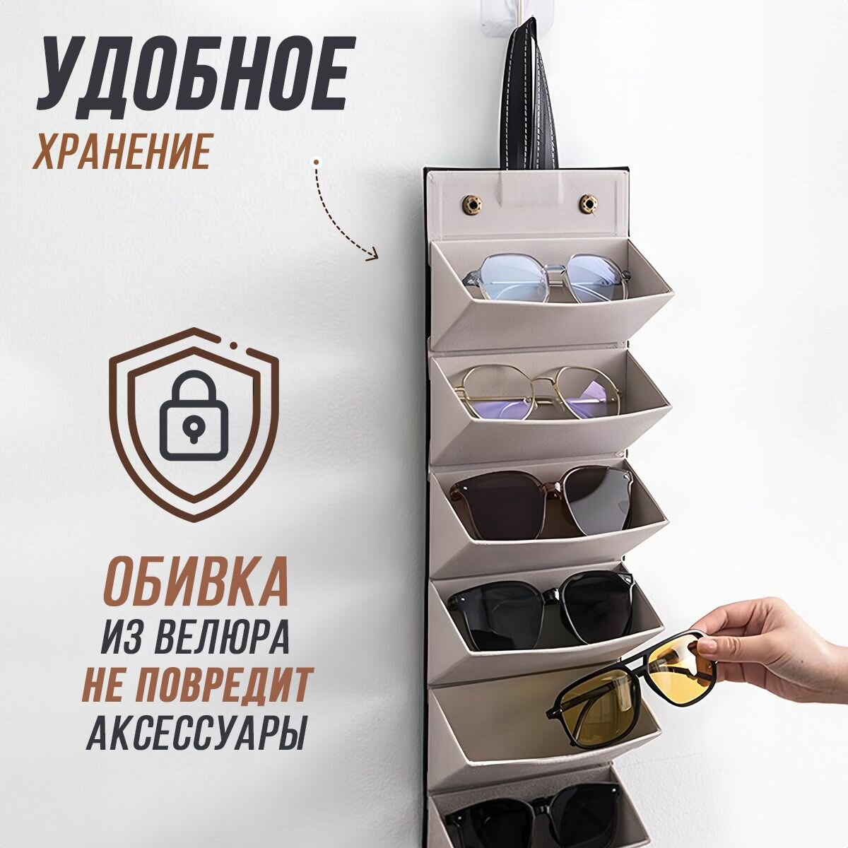 Органайзер для хранения очков из экокожи / 6 отделений / Черный интересное: