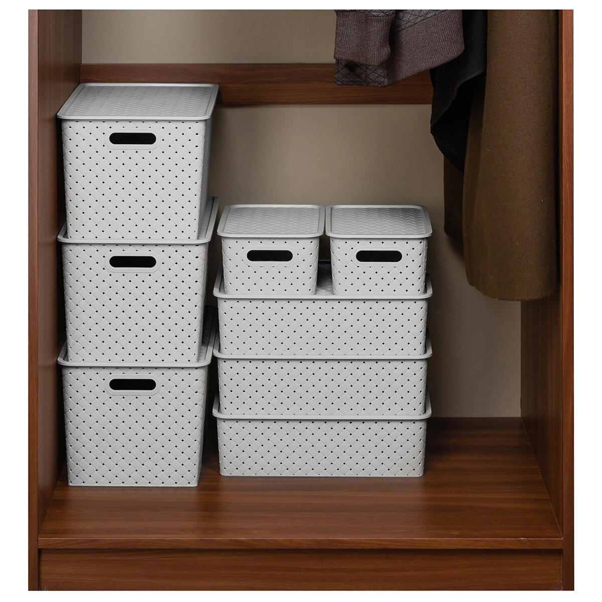 Купить Корзинка для хранения с крышкой 10шт Береста 3л (4шт), 7,5л (3шт), 14л (3шт) Еl Casa, светло-серый, серый, набор