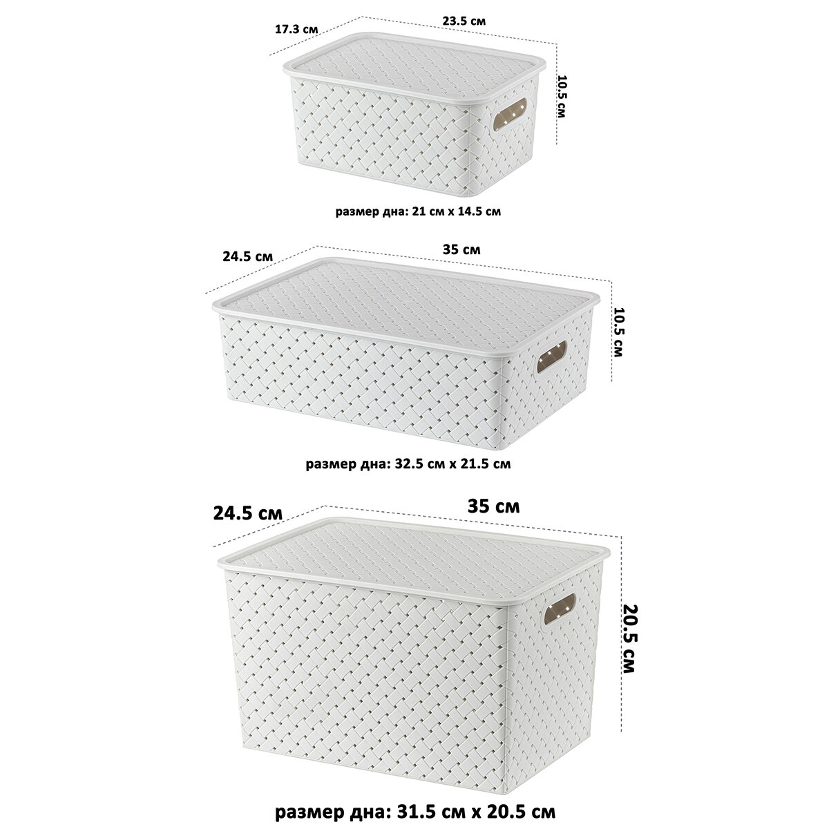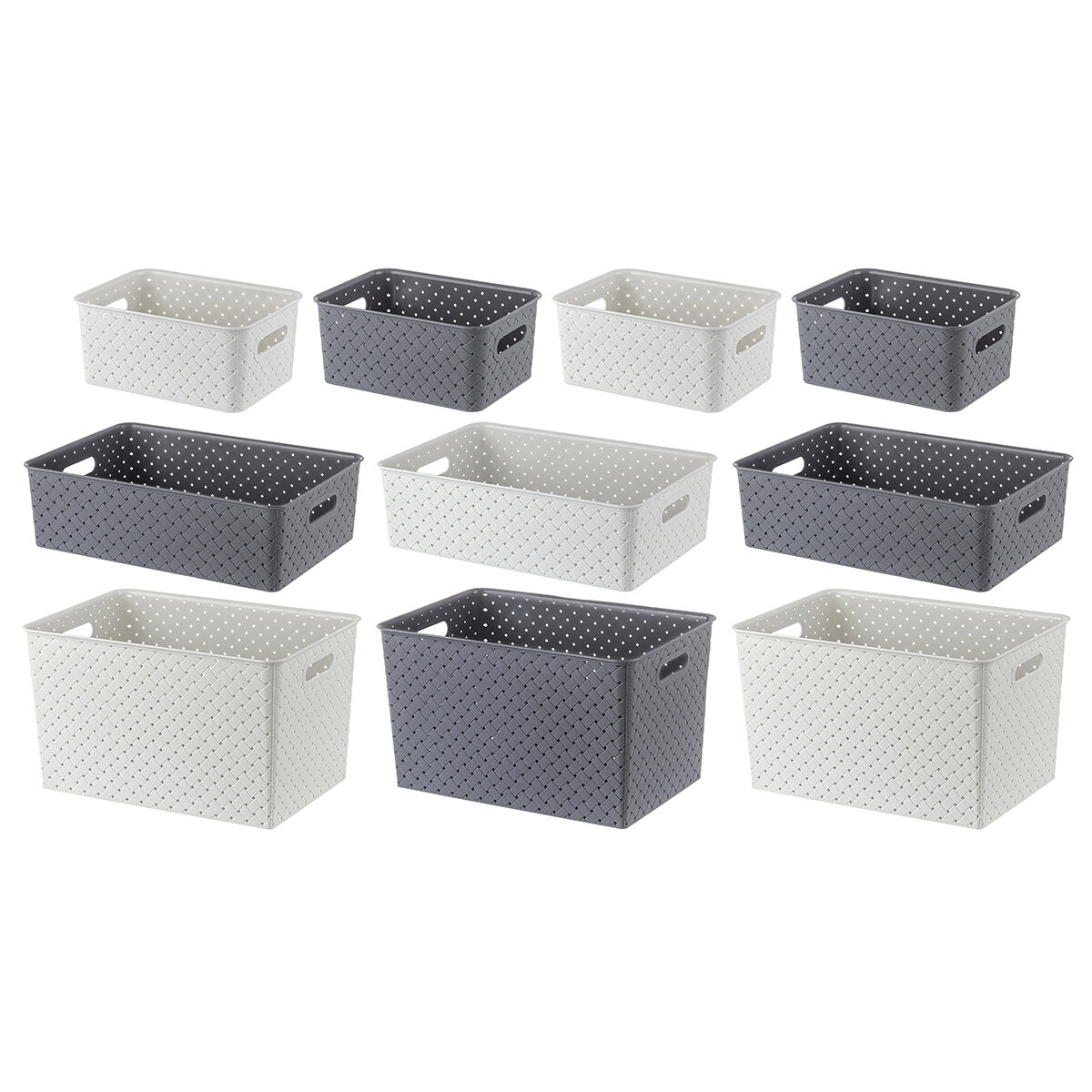 Корзинка, коробка для хранения с крышкой 10 шт Береста 3 л (4шт), 7,5 л (3шт), 14 л (3шт) El Casa, белый, черный, набор