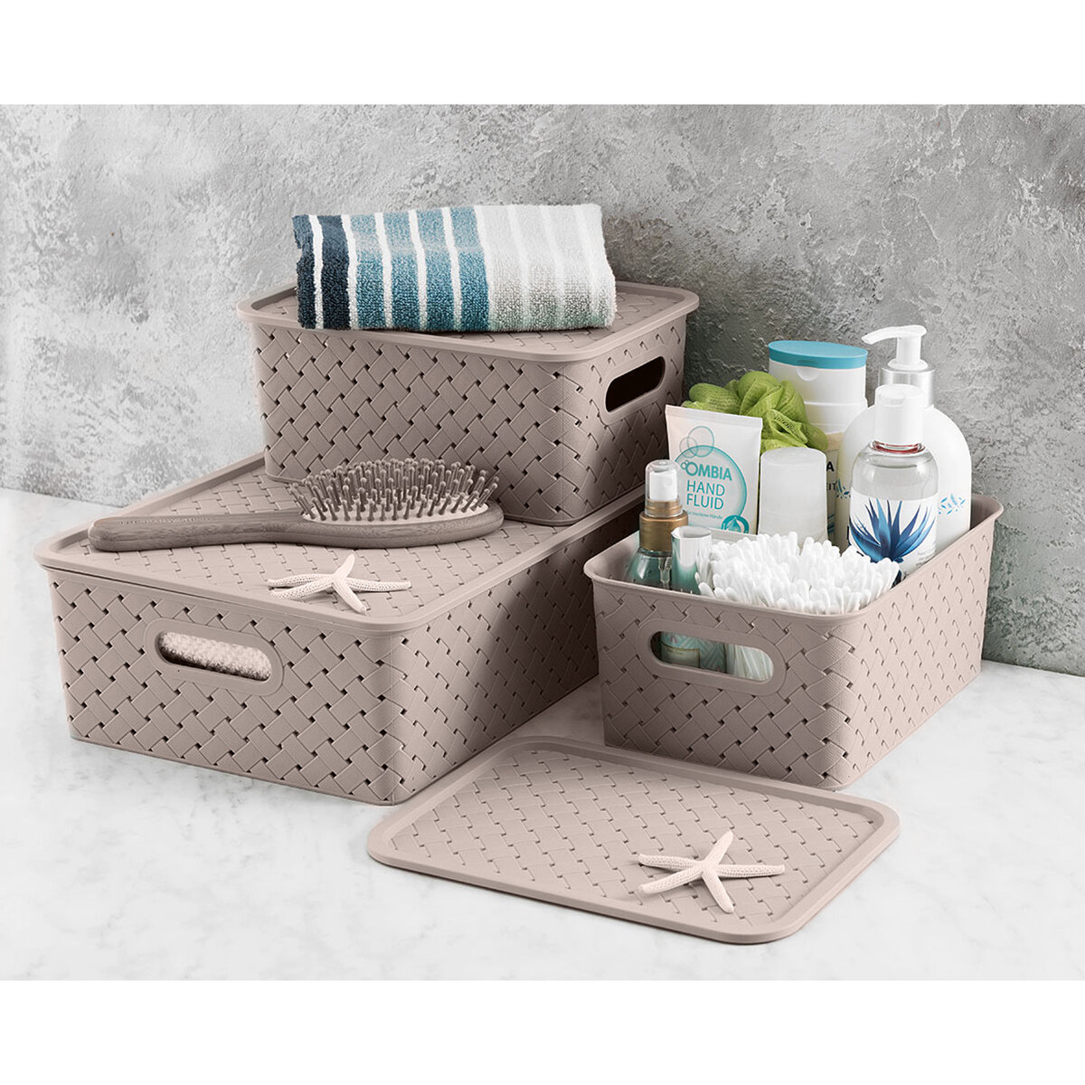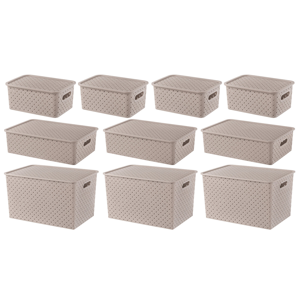 Купить Корзинка, коробка для хранения с крышкой 10 шт Береста 3 л (4шт), 7,5 л (3шт), 14 л (3шт) EL Casa цвет мокка, набор