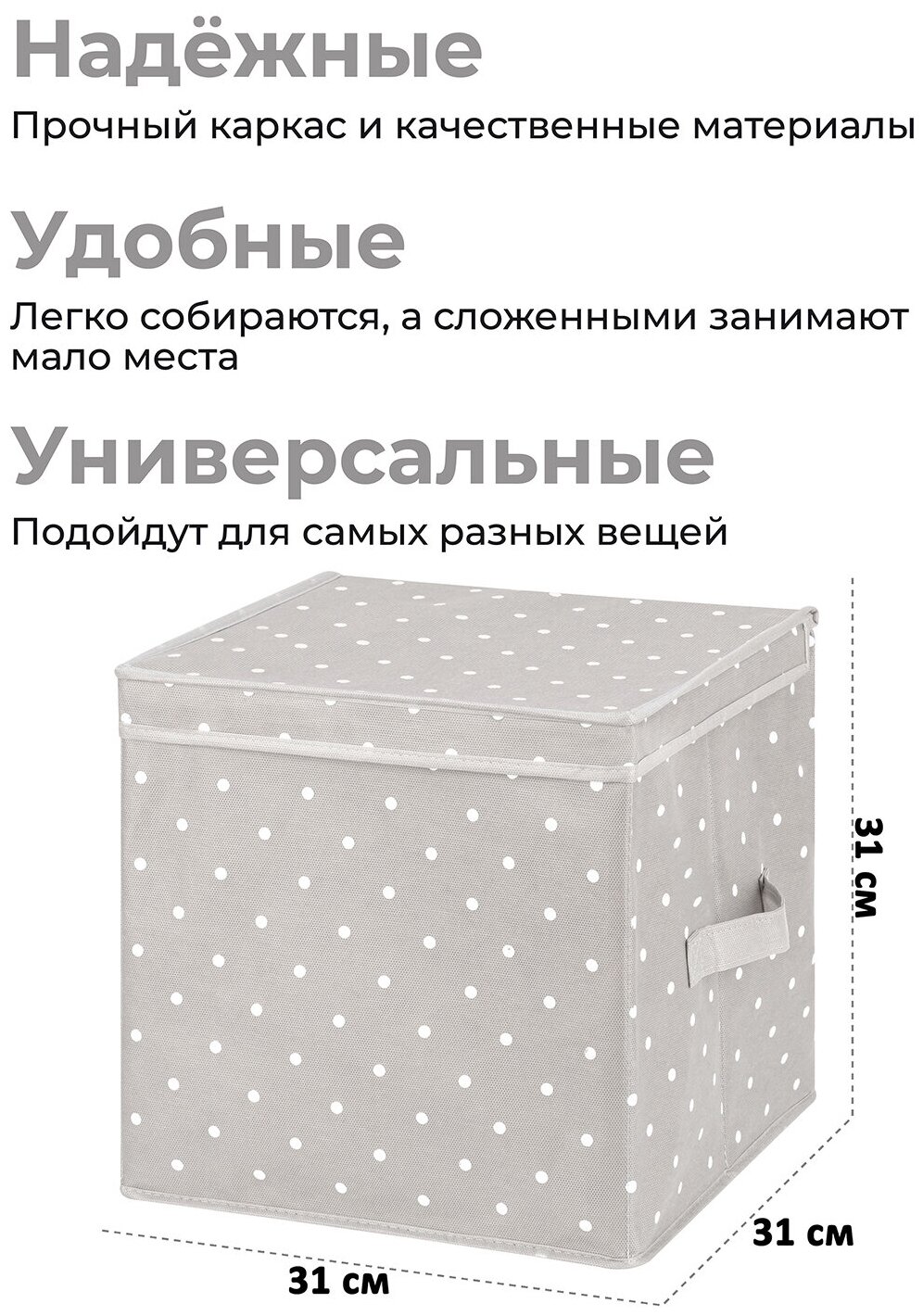 Короб-кофр, органайзер, складной для хранения 31х31х31 см EL Casa Серый горошек с 2 ручками, с крышкой интересное: