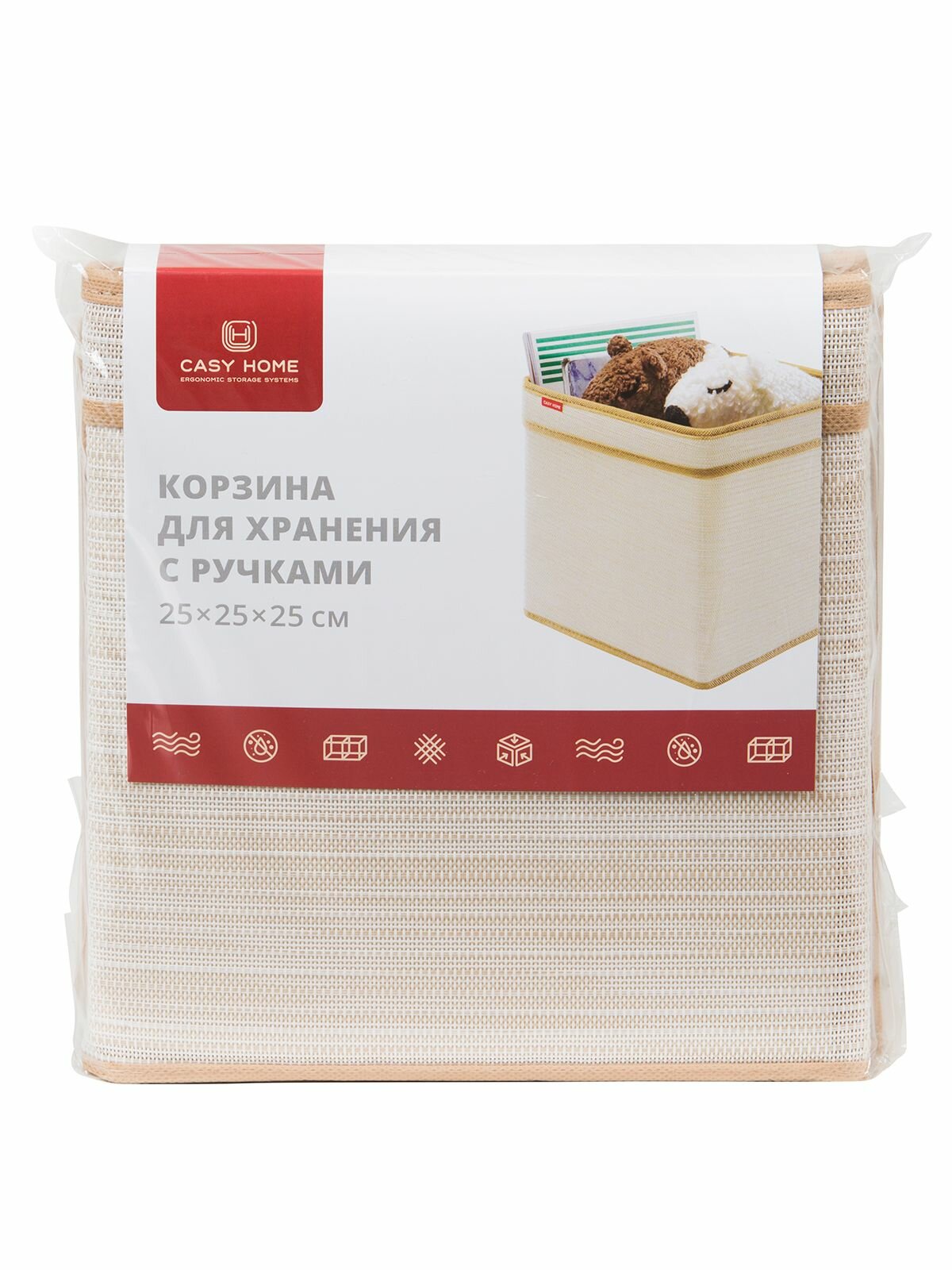 Корзина для хранения CASY HOME ВА-072, с ручками, бежевая, 28x18x18 см
