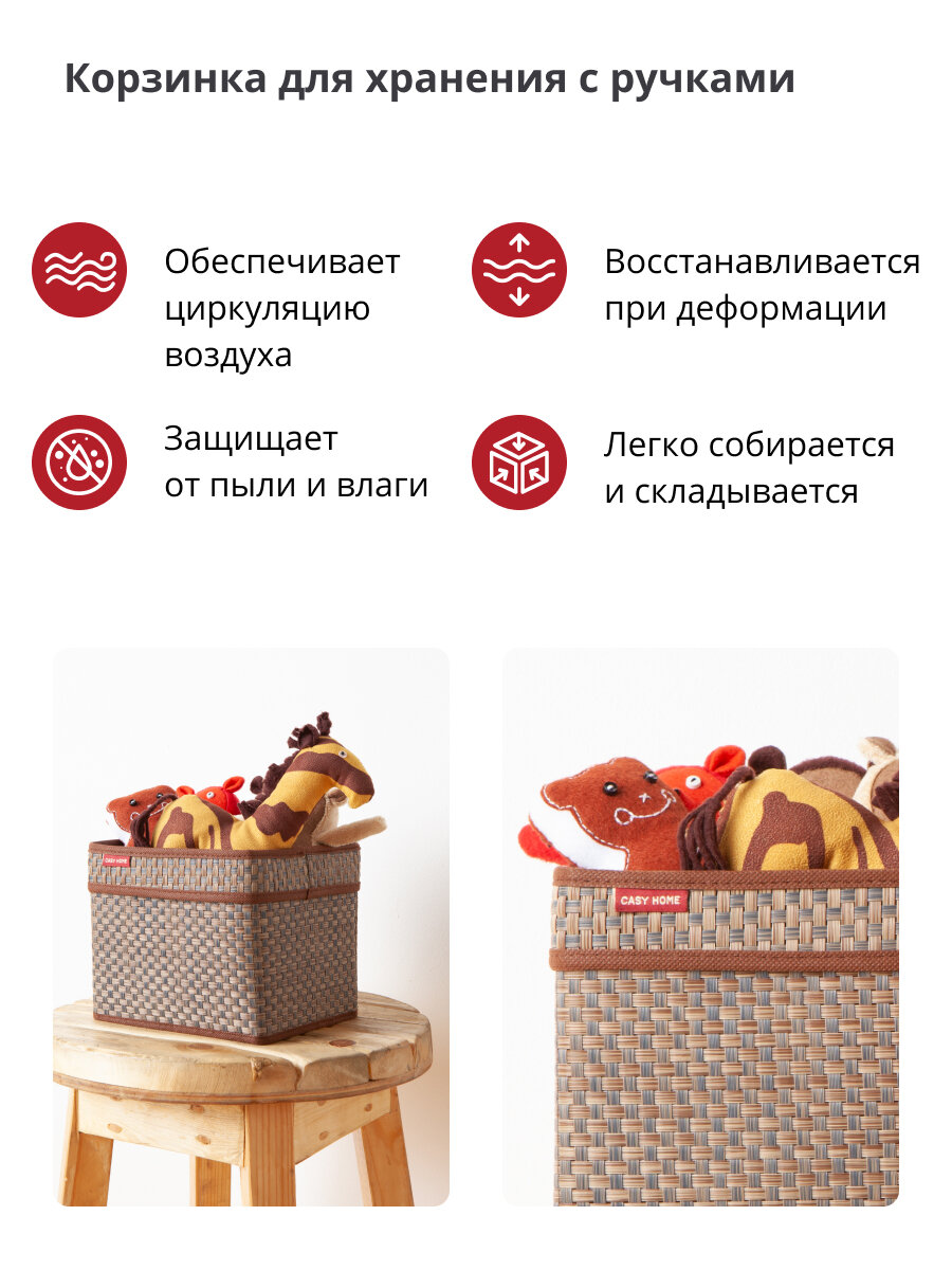 Корзина для хранения CASY HOME ВА-072, с ручками, бежевая, 28x18x18 см