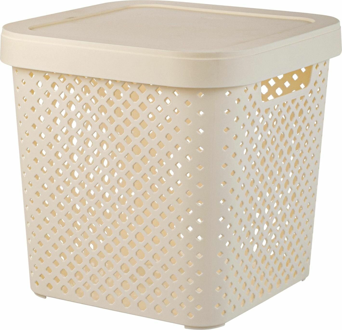 Купить Корзина Plast Team Stockholm 31x31x30 см, полипропилен, белая, для хранения, с ручками и крышкой