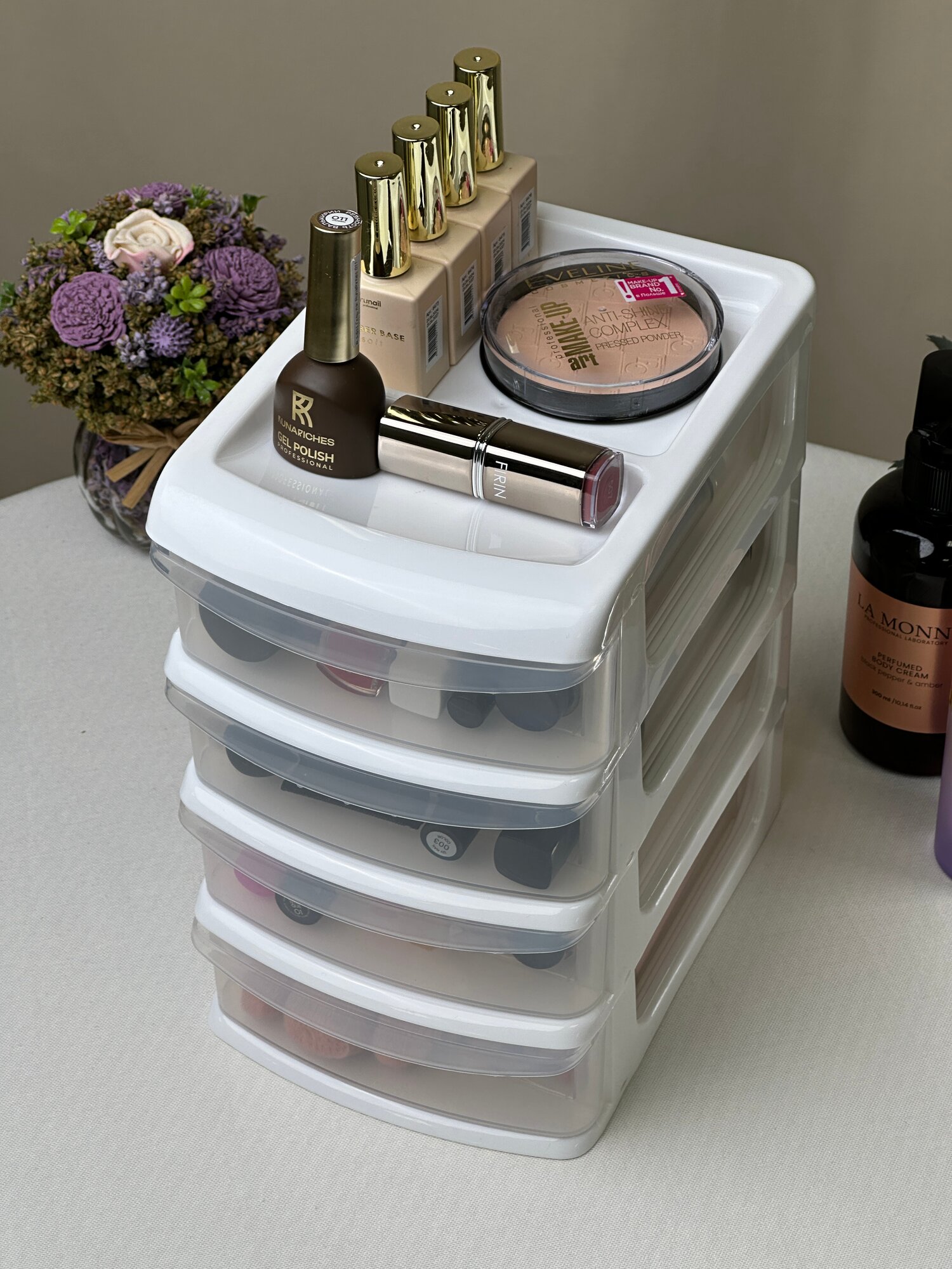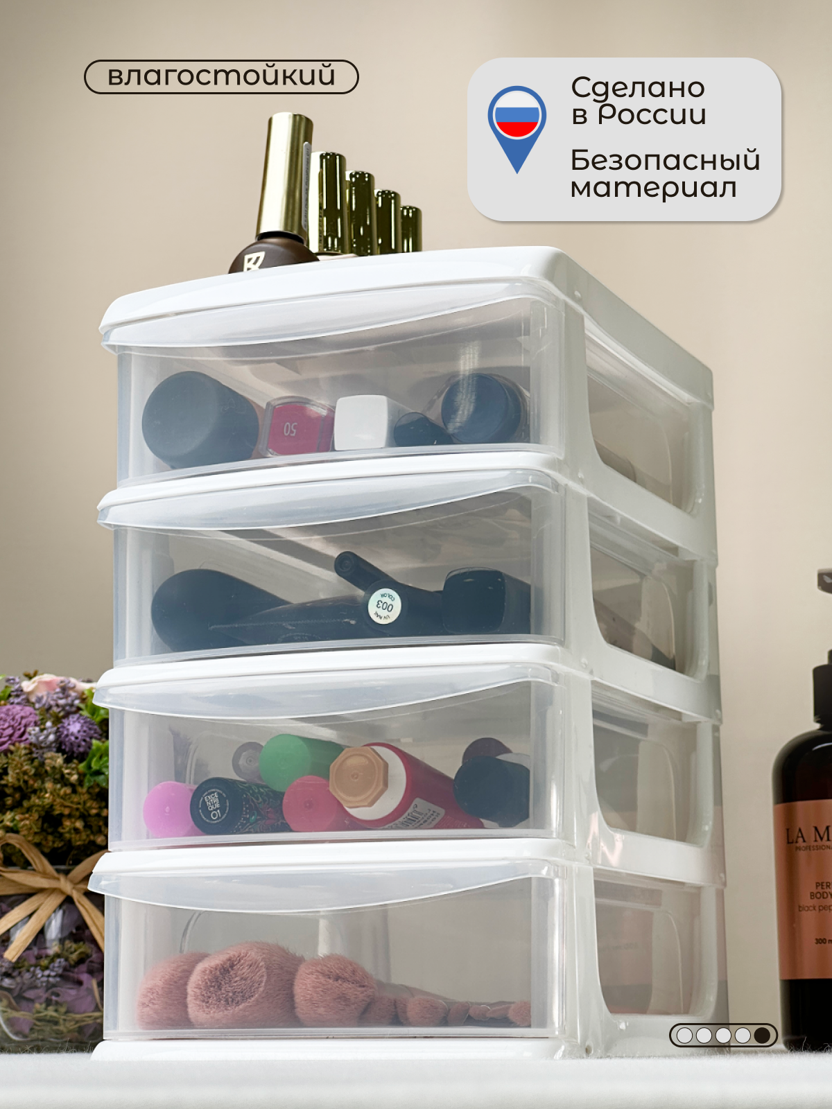 Органайзер, мини комод 4 ящика, пластиковый бокс для канцелярии, косметики, белый, прозрачный, 17,5х25,5х26,5 см интересное: