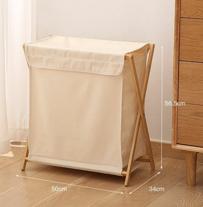 Складная корзина для белья объемом 90л из водонепроницаемой ткани с крышкой бежевого цвета интересное: