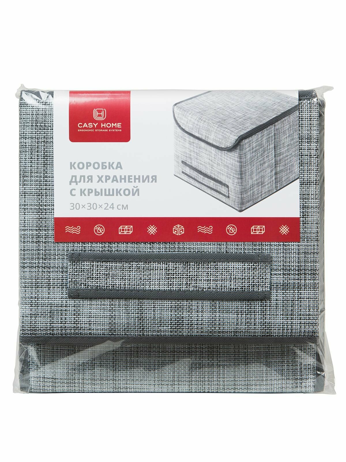 Купить Коробка Casy Home ВО-074, для хранения, с крышкой, серая, 30х30х24 см