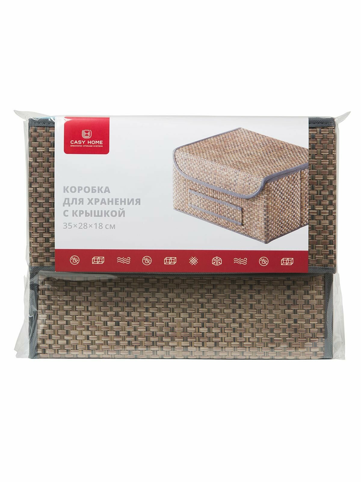 Коробка для хранения Casy Home ВО-022, с крышкой, бежевая, 35x28x18 см