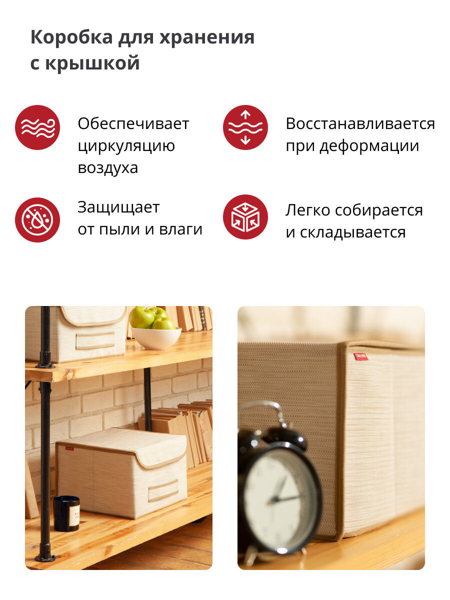 Коробка для хранения CASY HOME ВО-072, 30×30×24 см, бежевая, складная, с крышкой