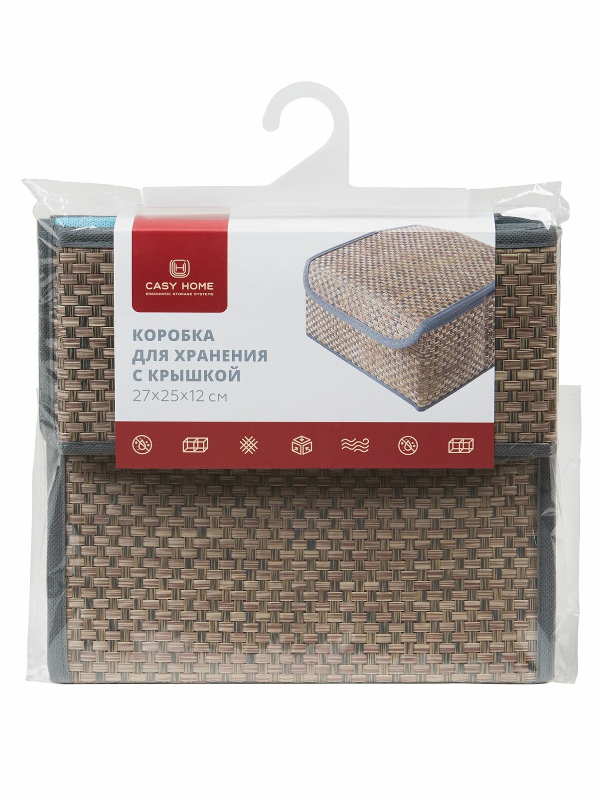 Коробка для хранения Casy Home, с крышкой, квадратная, бежевая, 27 х 25 х 12 см
