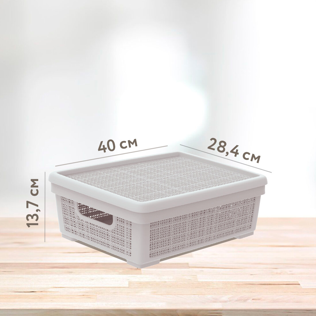 Корзина плетёная для хранения с крышкой Лён, 11 л, 40х28,4х13,7 см, цвет серый интересное: