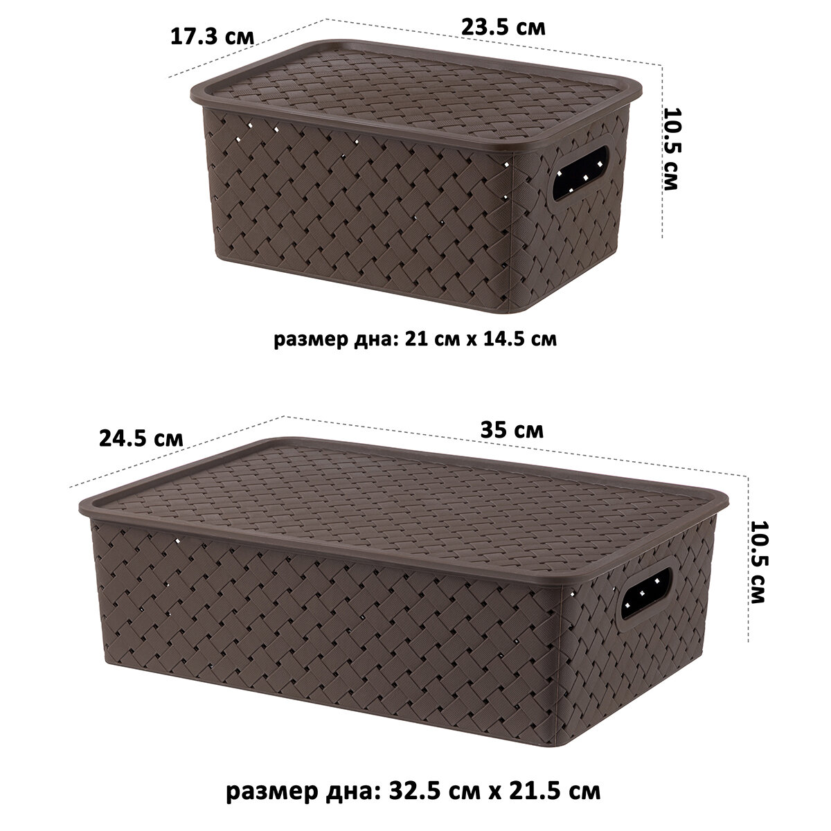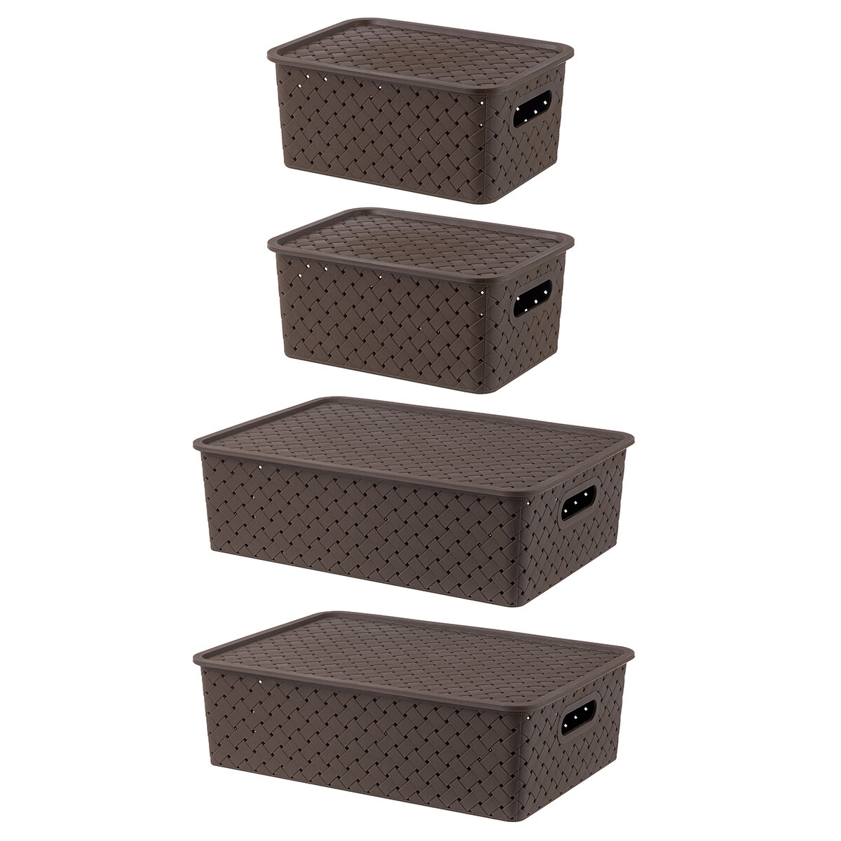 Корзинка, коробка для хранения, с крышкой 4 шт Береста - 3 л (2 шт), 7,5л (2 шт) EL Casa, цвет темно-коричневый, набор интересное: