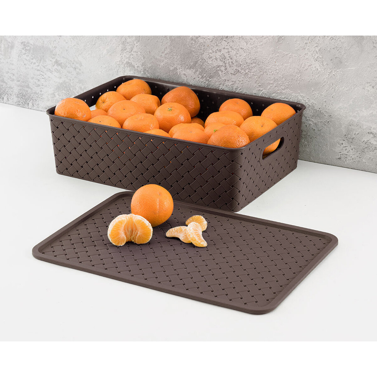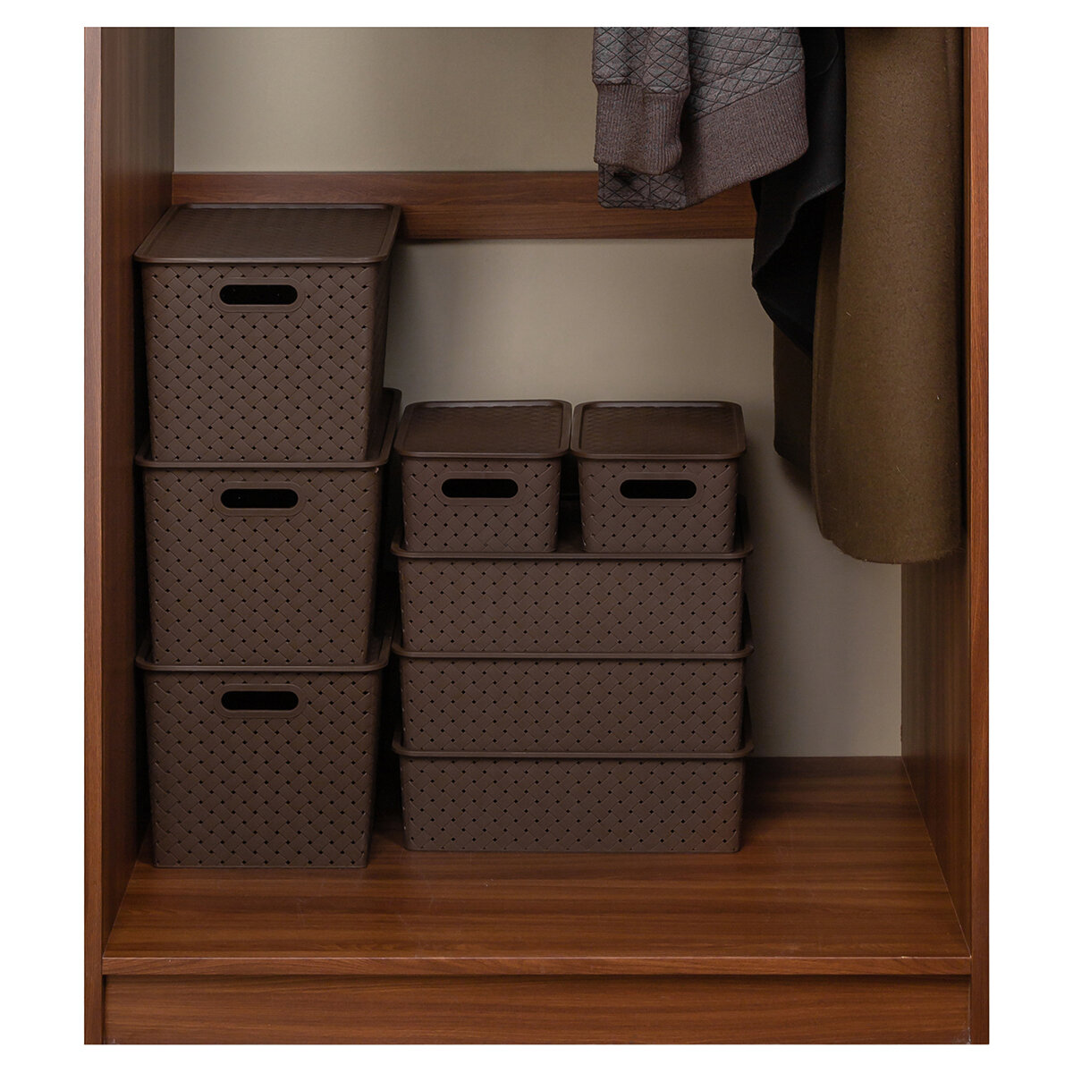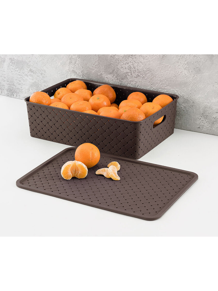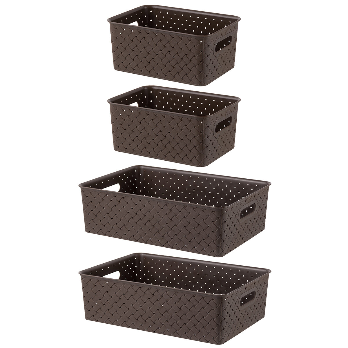 Купить Корзинка, коробка для хранения, с крышкой 4 шт Береста - 3 л (2 шт), 7,5л (2 шт) EL Casa, цвет темно-коричневый, набор