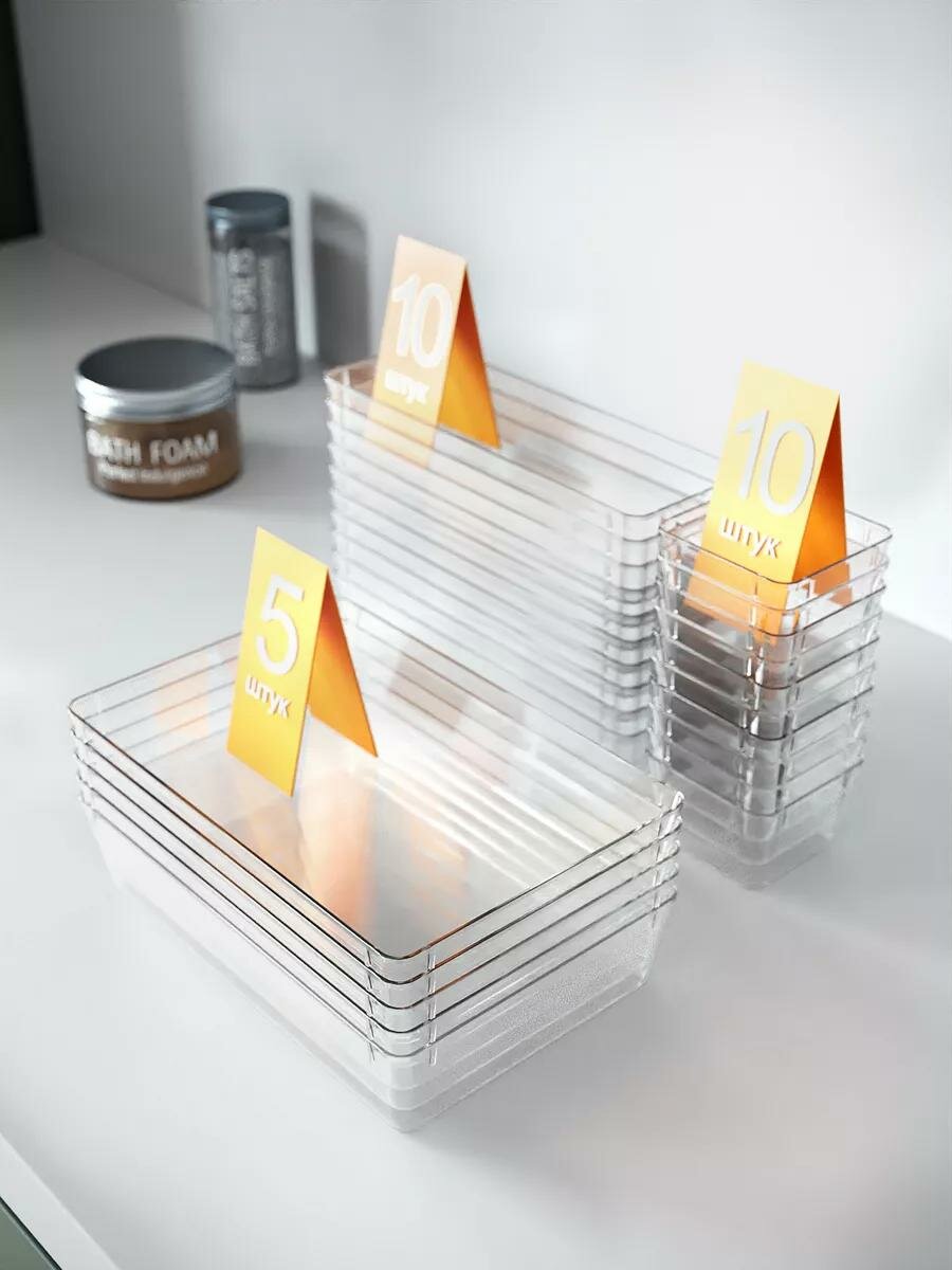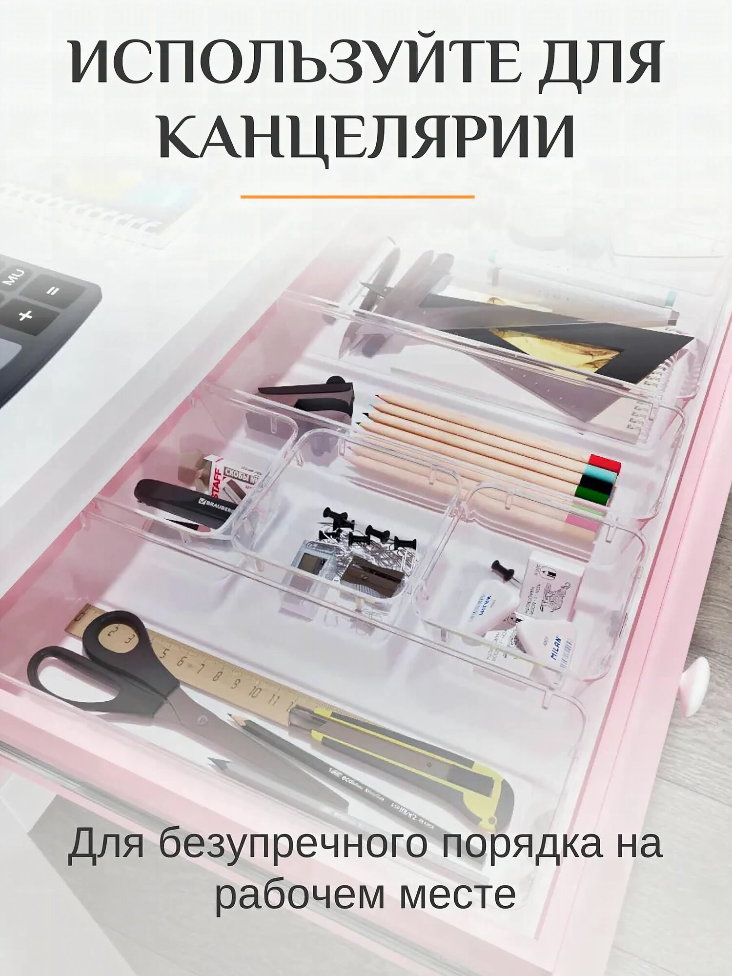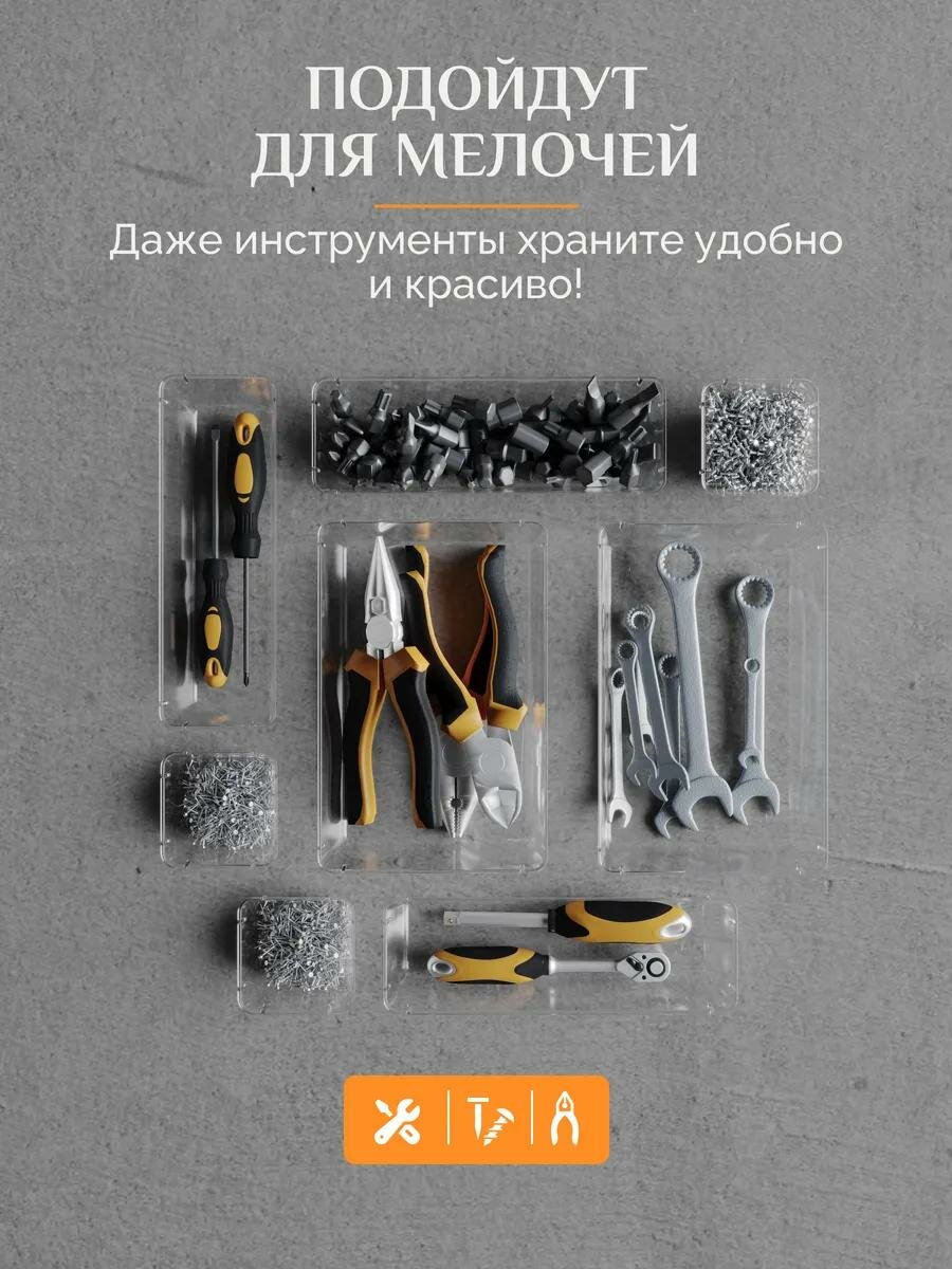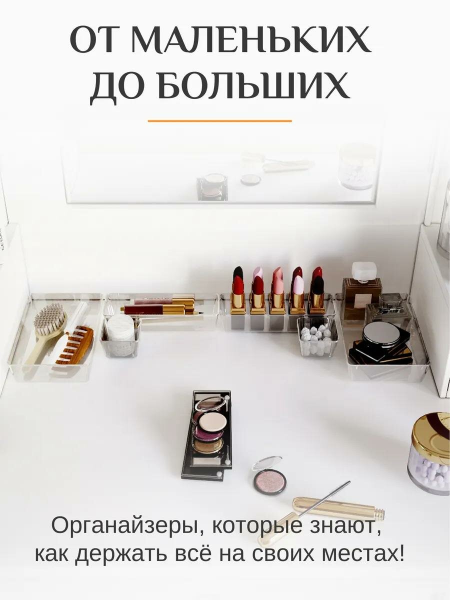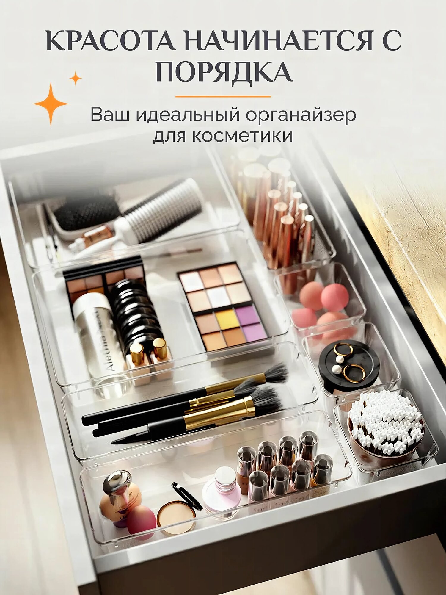 Органайзер для косметики Прозрачный, набор 8 штук, пластиковый, для ящика, универсальный